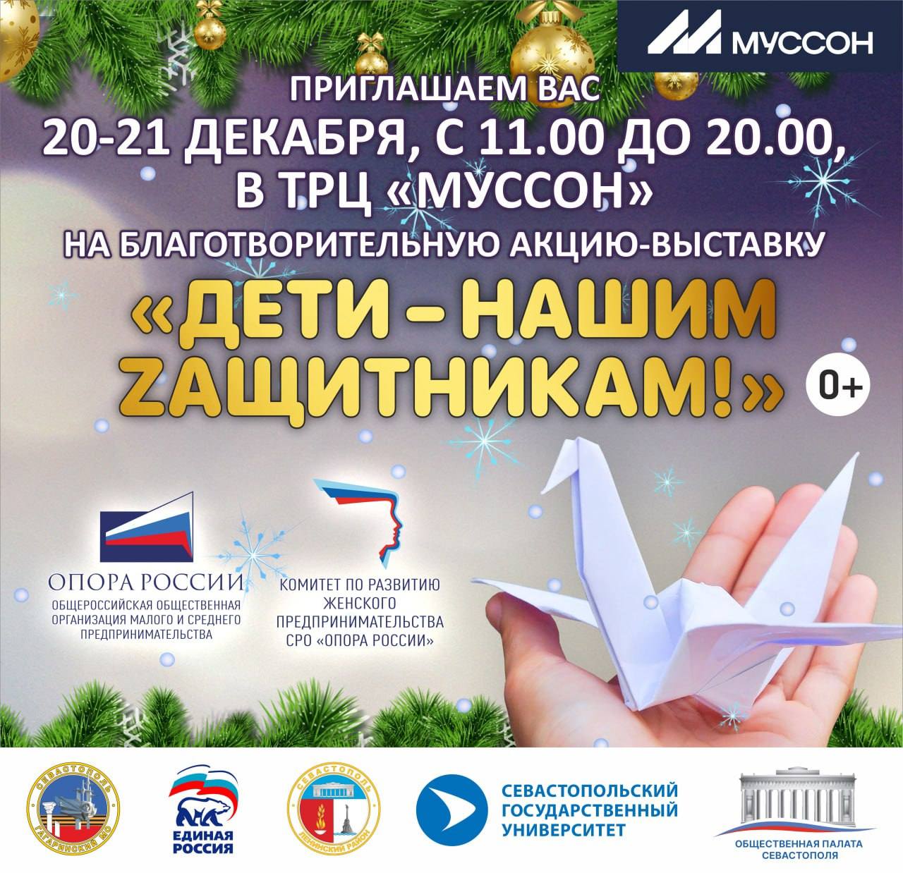 Приглашаем вас 20-21 декабря с 11 до 20.00 в торговый центр «Муссон» на благотворительную акцию-выставку «Дети — нашим защитникам».