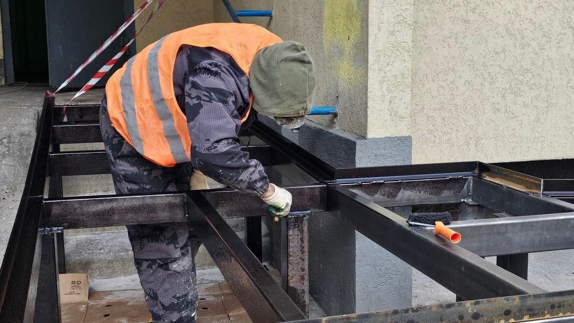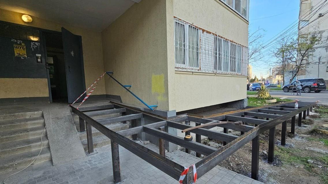 На проспекте Генерала Острякова, 176, устанавливают пандус для маломобильного жителя