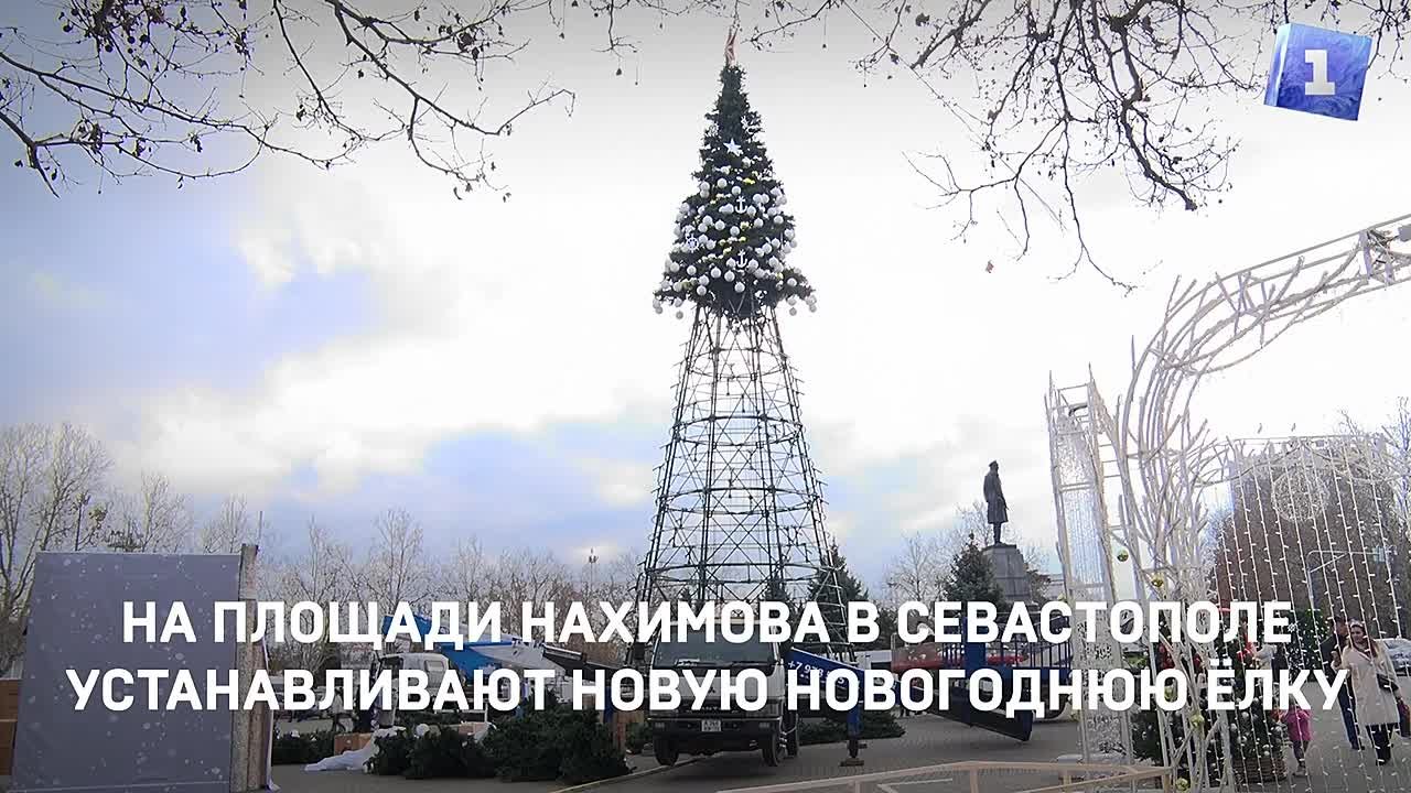 На площади Нахимова в Севастополе украшают новую новогоднюю ёлку.