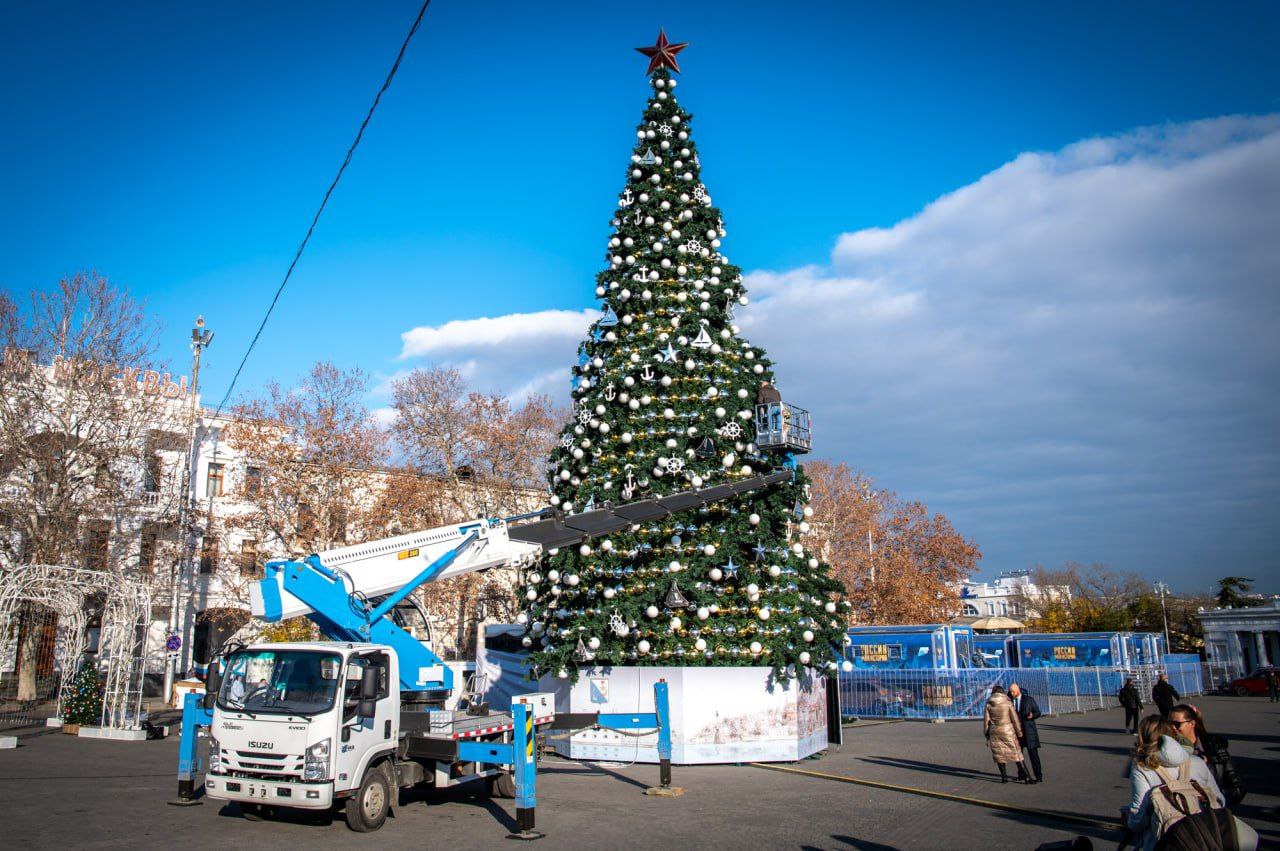 Производством занялась севастопольская компания Max Christmas. Ёлку выполнили в морском стиле с эксклюзивным дизайном. Украшения для одной из трёх фотозон расписали ученики городской школы искусств.