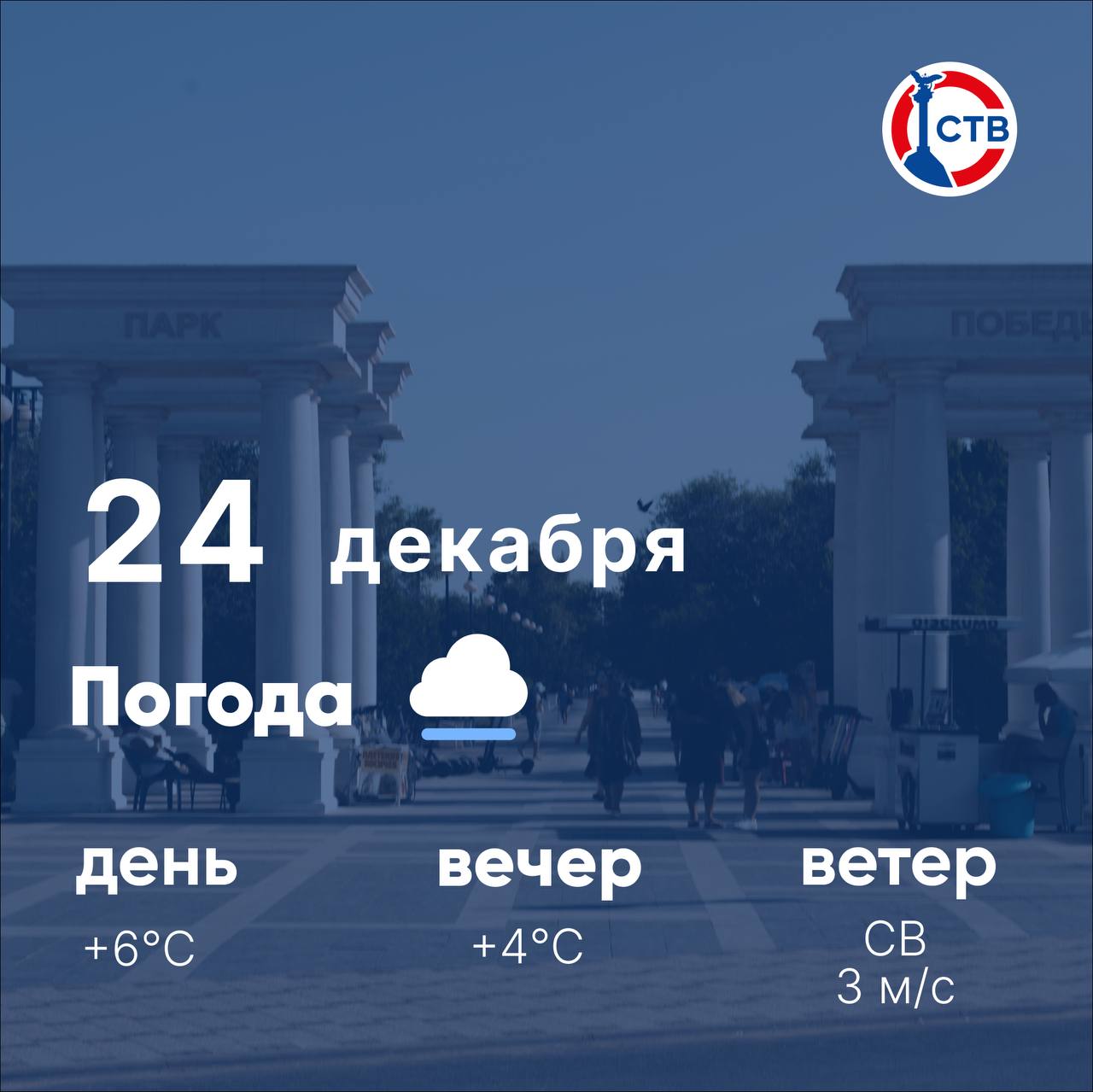Погода на 25 декабря:• переменная облачность• температура воздуха: от -6° до +3°• атмосферное давление: 770 мм рт.ст.• ветер северо-восточный до 4 м/сЛегендарный 24 | Севастополь