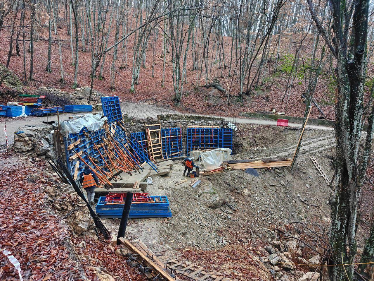 Предупреждающие знаки об ограничении движения установлены на всём участке — от села Танковое до села Соколиное. На ключевых точках выставлен круглосуточный пост охраны, который контролирует соблюдение запрета и не допускает проезда посторонних автомобилей.