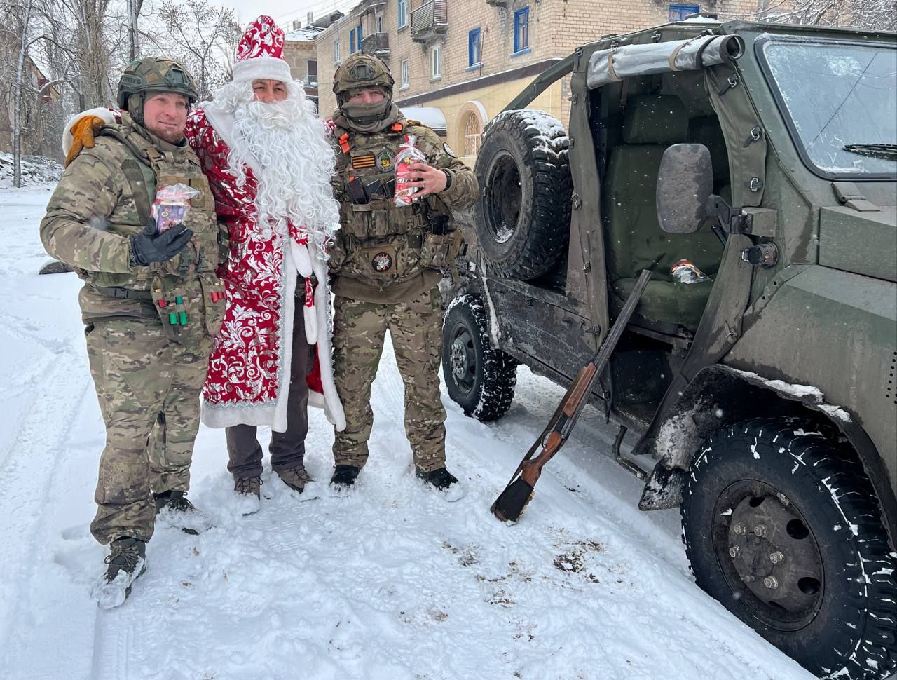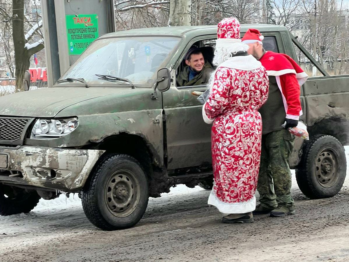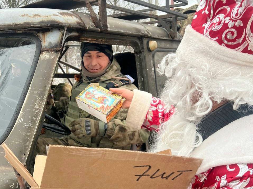 Вместе со всем необходимым новогодние подарки бойцам доставили добровольцы Гуманитарной миссии.