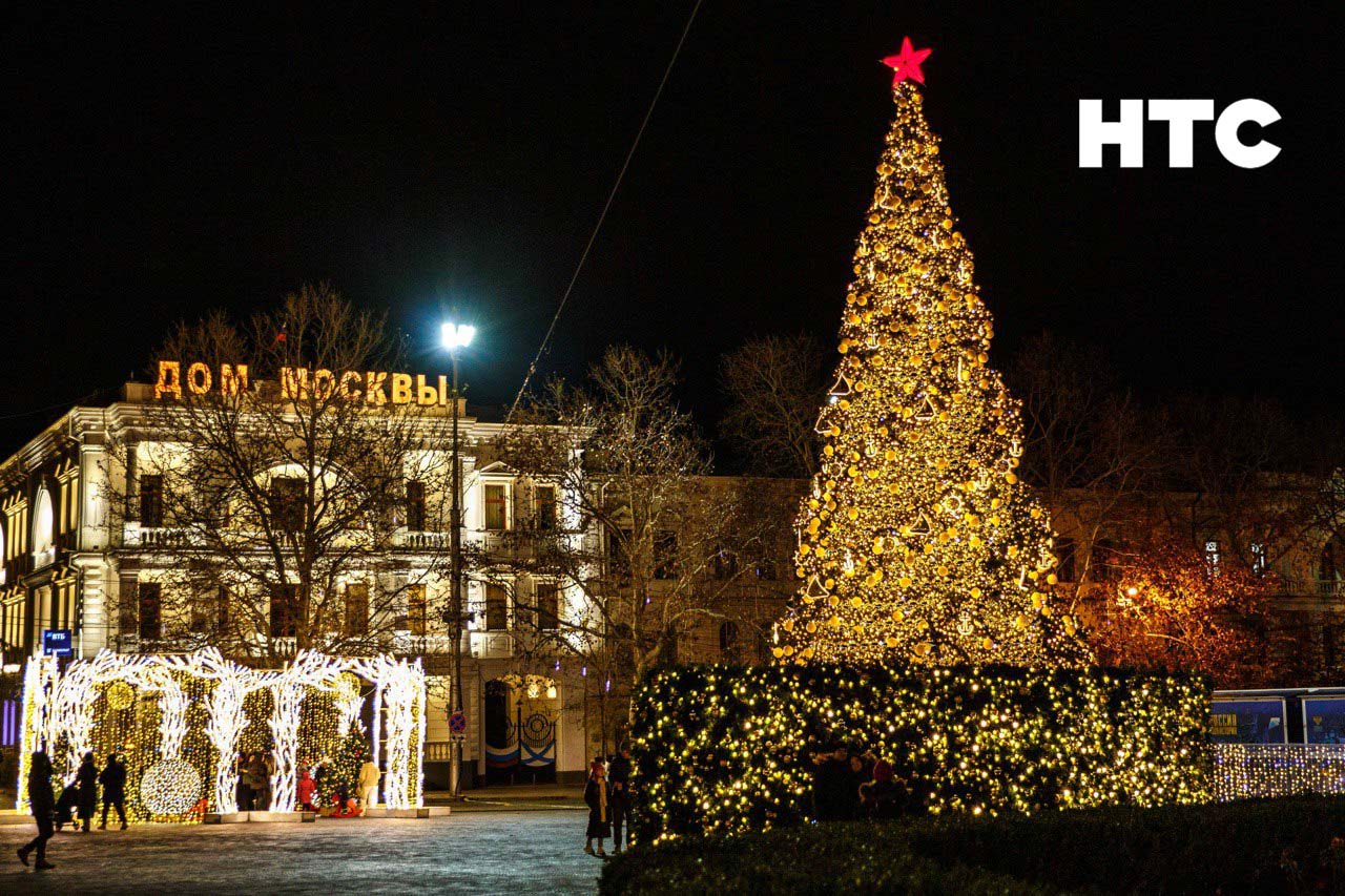 Несмотря на капризы погоды, город сияет огнями и создаёт праздничное настроение.
