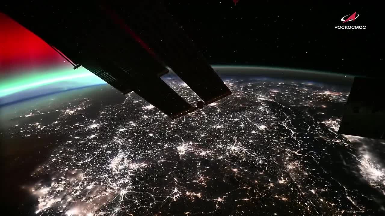 Как выглядит полярное сияние, вызванное магнитной бурей, с борта МКС показал космонавт Роскосмоса Сергей Кудь-Сверчков.