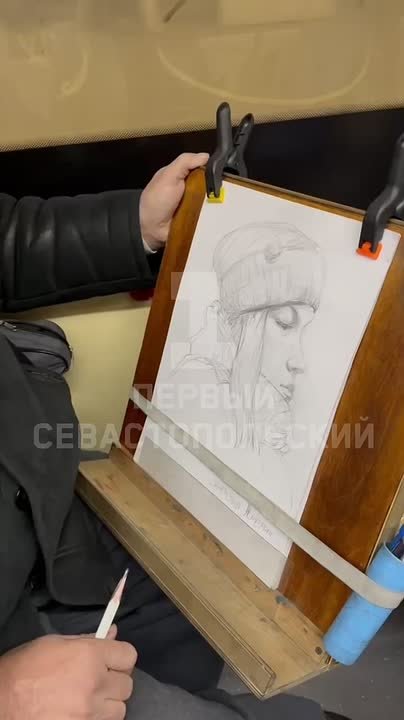 На время севастопольский троллейбус стал художественной мастерской. Пассажир достал свой компактный мольберт, закрепил на нём лист бумаги и тайком начал набрасывать карандашом портрет. А в конце поездки подарил его журналисту.