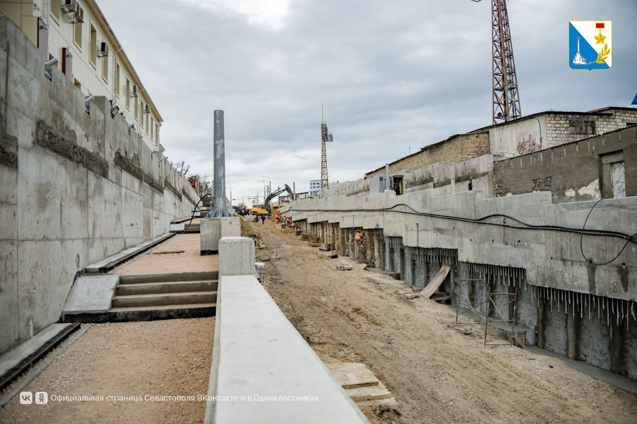 Подрядчик уже начал монтировать лестницы и основание для тротуаров. С февраля рабочие приступят к укладке плитки. Все работы идут параллельно — в том числе, устройство монолитной части стен.