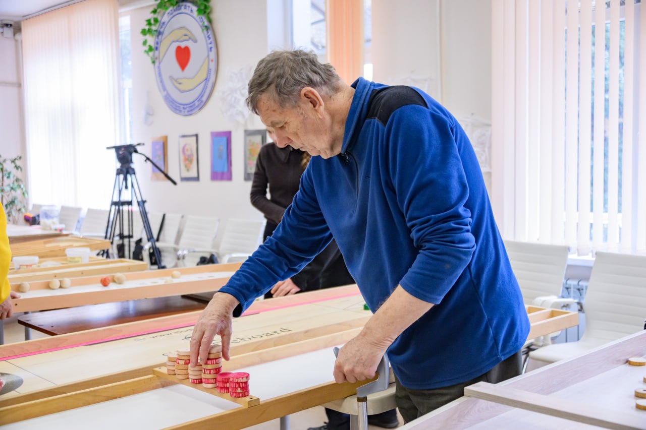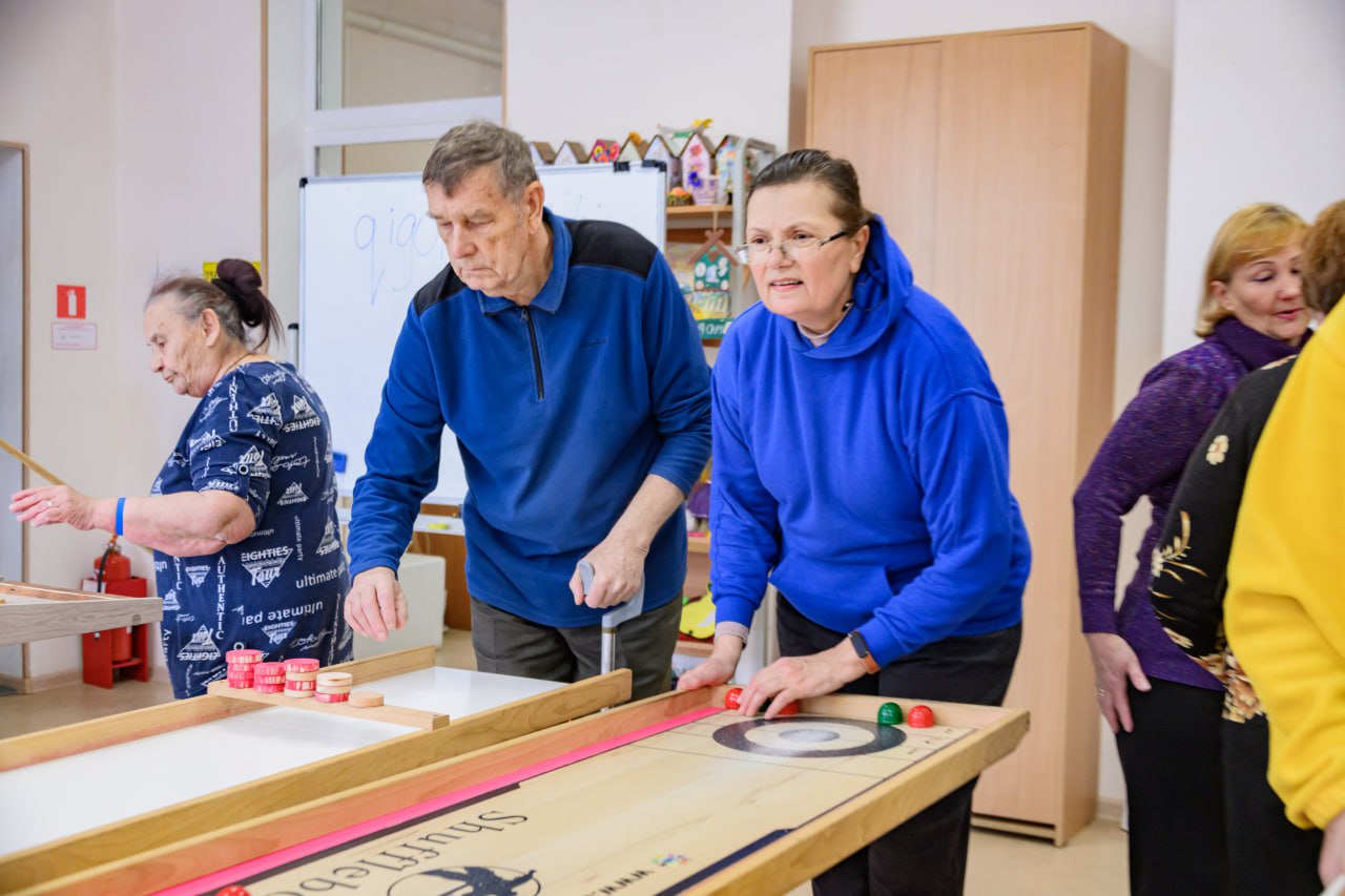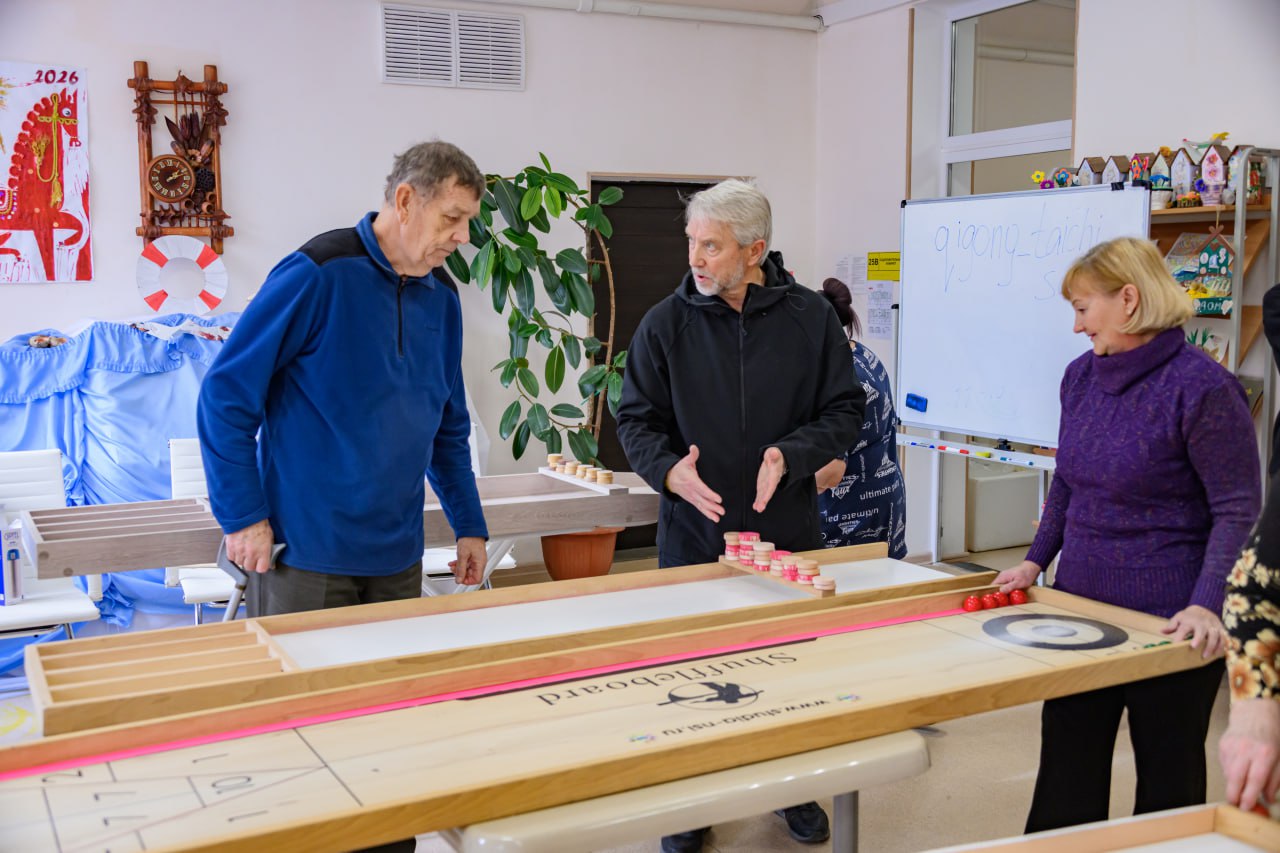 Занятия по необычным дисциплинам проводят «серебряные волонтеры» Олег Николаев и Вячеслав Гурьев. Участники осваивают шаффлборд, новус, джакколо и кульбуто, которые развивают логику, координацию и память.