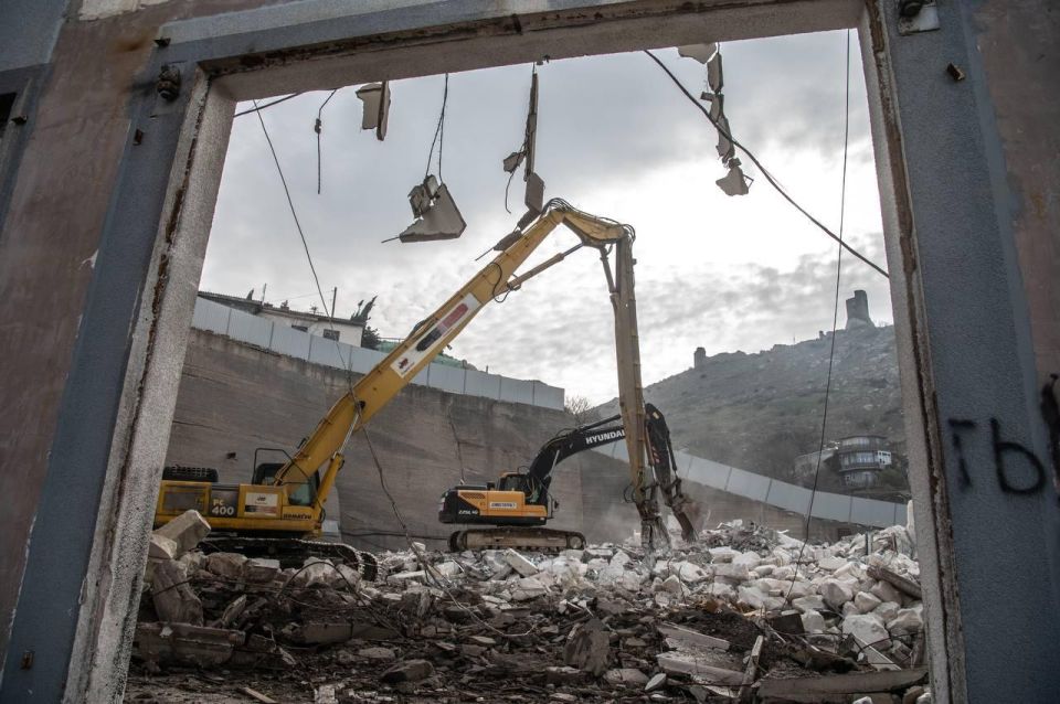 В Балаклаве начался демонтаж заброшенного здания бывшей научно-исследовательской базы ВМФ СССР, известного в последние годы как центр экстремальных развлечений «Академия шпионажа».