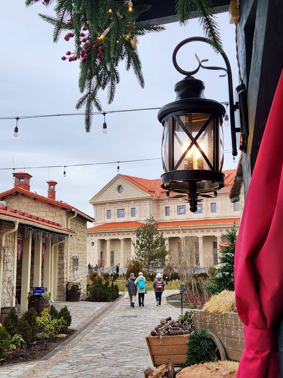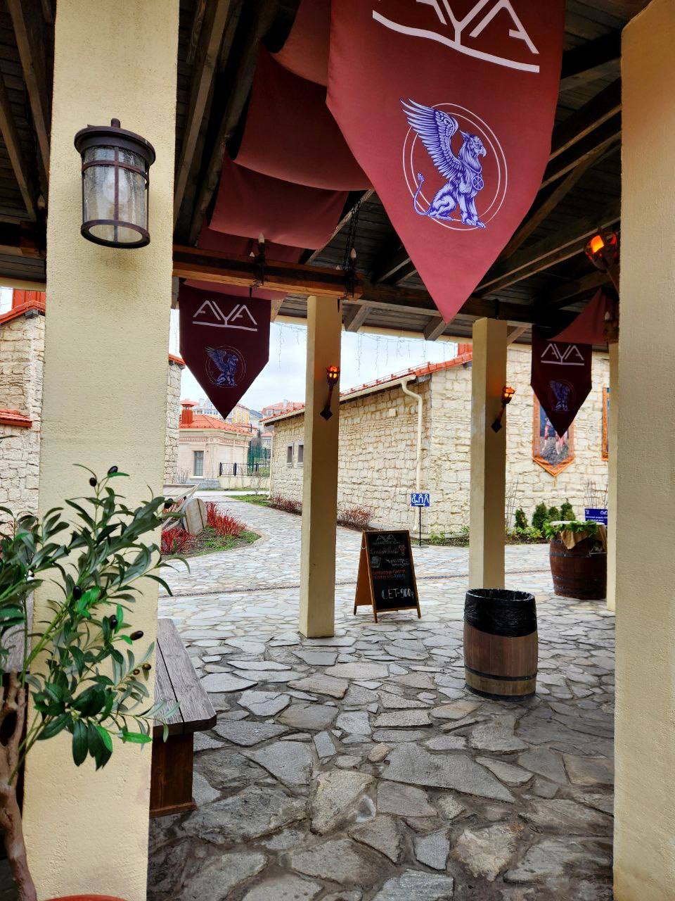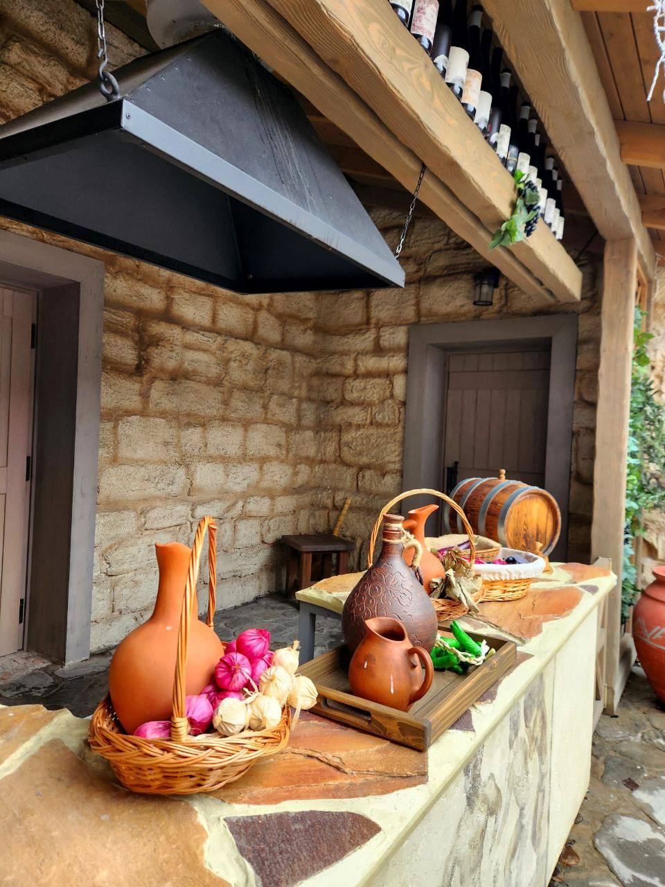 Здесь также воссозданы стилизованные постройки с традиционным внутренним двориком, вокруг которого располагались жилые и хозяйственные помещения.