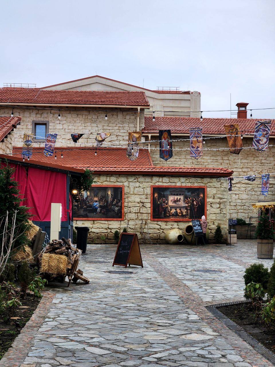 В Византийском квартале можно познакомиться с архитектурой Херсонеса первых веков нашей эры. В сельскохозяйственной округе винодельни были почти в каждой усадьбе, а вот в самом городе археологи обнаружили единственную винодельню II–IV веков — её реконструкция и легла в основу этого пространства.