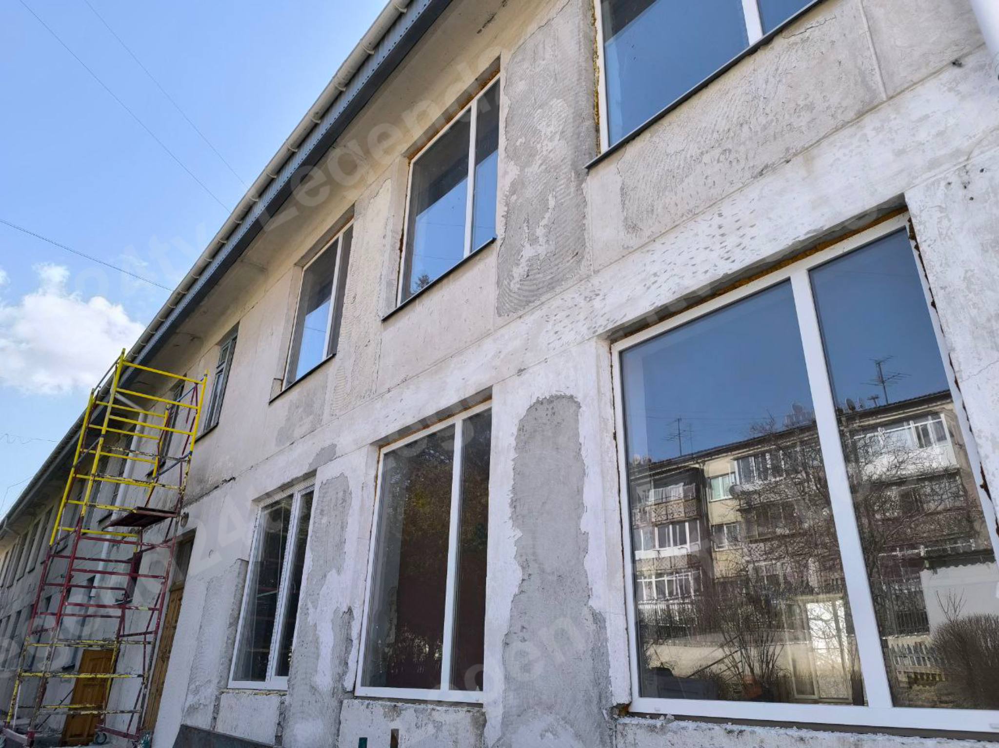 Строители демонтируют старое покрытие помещений. По плану заменят все инженерные сети, окна и кровлю. Для воспитанников предусмотрены тёплые полы, а так же специальное покрытие стен. Благоустроят и прилегающую территорию.