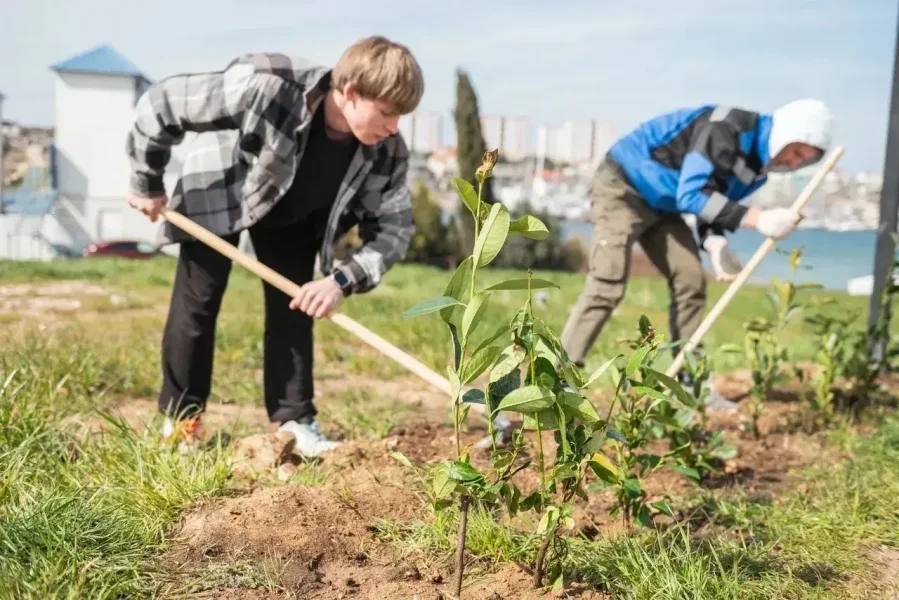 У центра «Бухта Казачья» продолжают озеленение