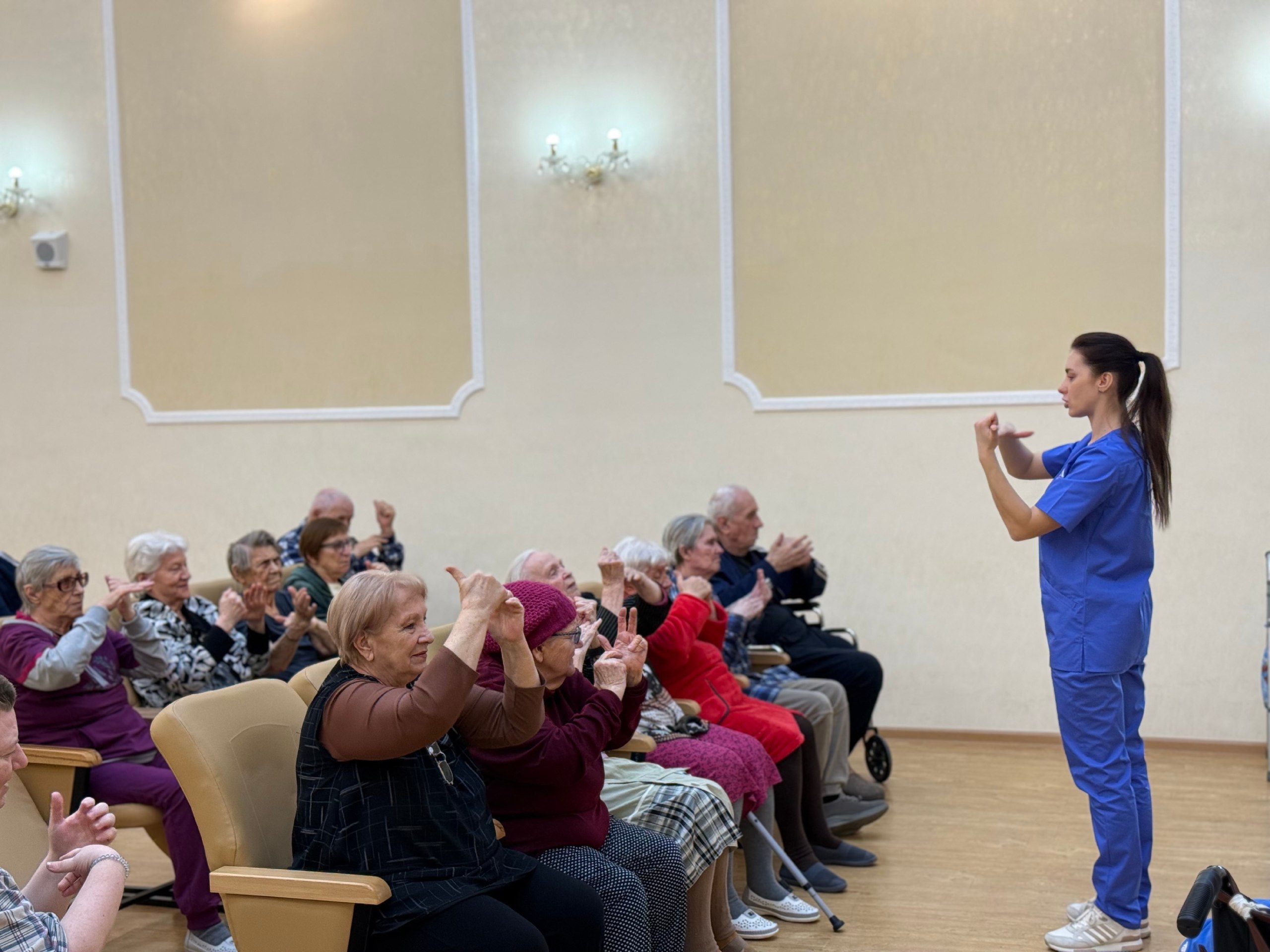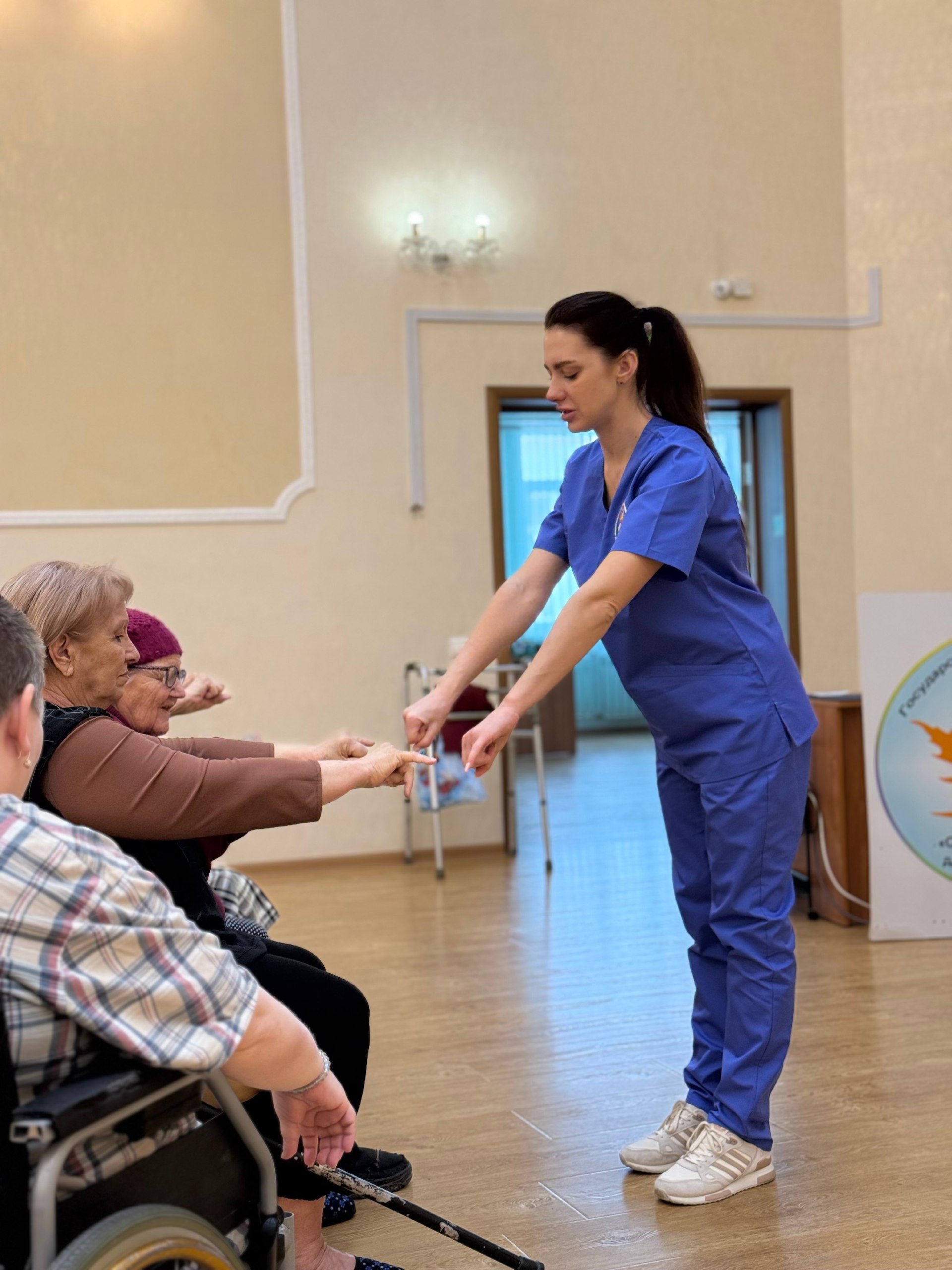 В Севастопольском доме-интернате для престарелых и инвалидов проходят занятия по дыхательной гимнастике. Их проводит врач Центра общественного здоровья и медицинской профилактики Марина Позднякова.