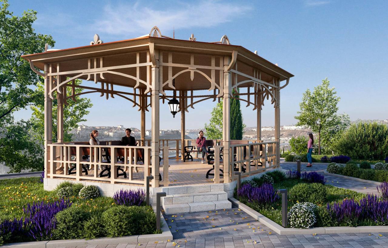 Элементы парковой архитектуры — фонари, лавочки, входная группа, беседки, подпорные стены — постараются сделать аутентичными.