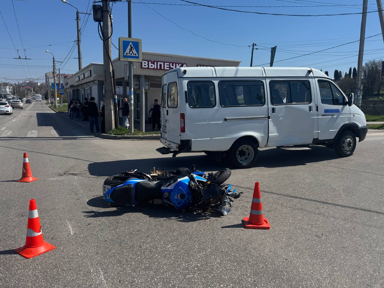 По данным ГАИ Севастополя, 34-летний водитель «Газели» поворачивал налево на разрешающий сигнал, но не уступил дорогу мотоциклу «Suzuki» под управлением 37-летнего водителя, который ехал прямо во встречном направлении.