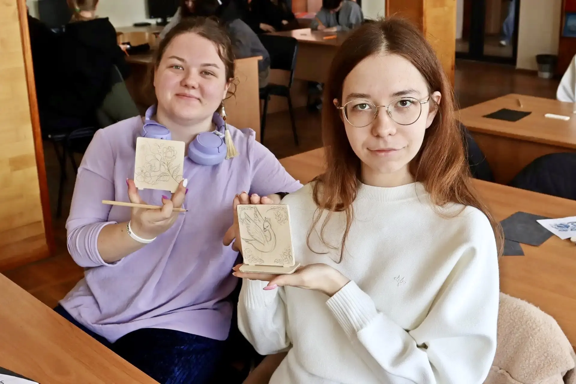 Осваивали технику выжигания по дереву под чутким руководством Ольги Глазуновой и Дарьи Лагоды.