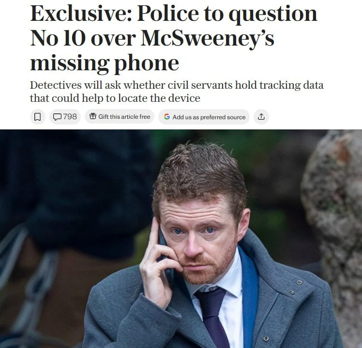 Полиция допросит сотрудников Даунинг-стрит по делу о краже телефона экс-главы аппарата Стармера: в смартфоне могли быть данные о скандале с лордом Мандельсоном.