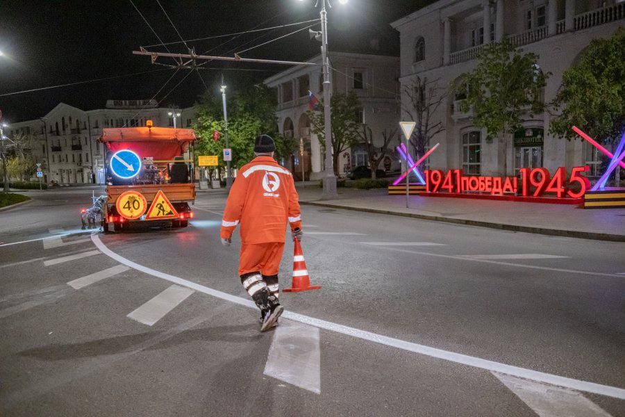 Напомню, за сутки специалисты Севавтодора наносят 15 км разметки в городе и 30 км в пригороде.