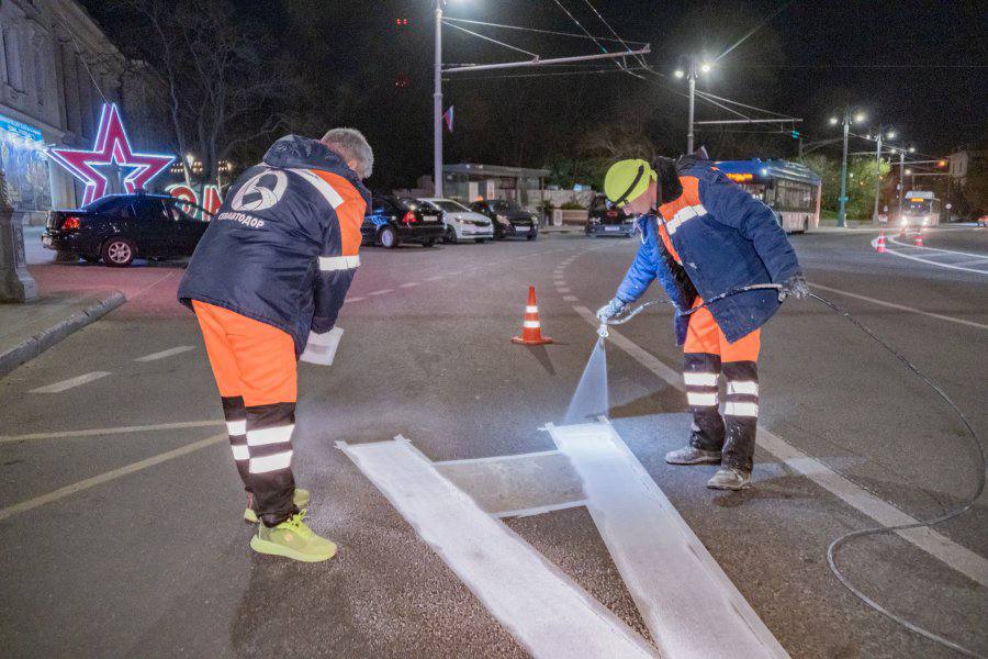 На сегодняшний день частично обновили разметку в Гагаринском, Нахимовском, Ленинском районах и Балаклаве: нанесли более 240 километров линий, обновили краску на 300 пешеходных переходах и 40 «стрелах» направления движения.