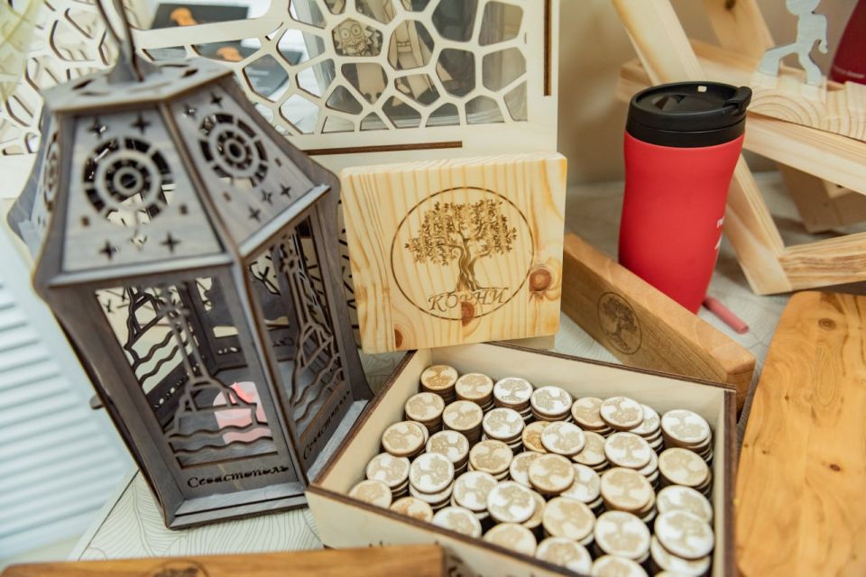 Сегодня на открытии центра супружеская пара из известной севастопольской династии ремесленников — Юрий и Юлия Панковы — провели творческое занятие по художественной росписи деревянных изделий. Дети и взрослые делали домашние сувениры — деревянные магниты.