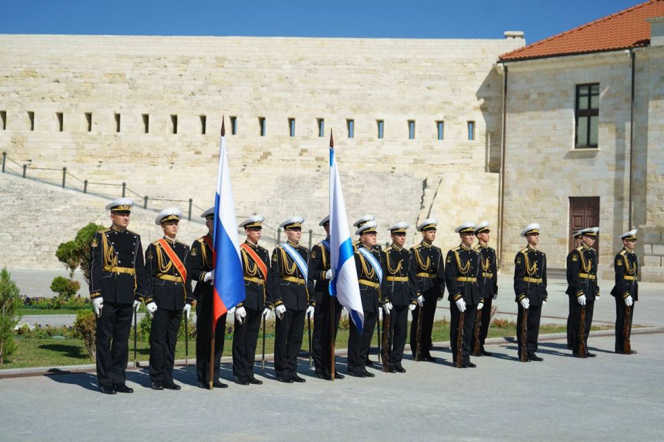 Вместе с руководителем музейно-выставочного комплекса «Константиновская батарея», председателем Севастопольского городского отделения РГО Владимиром Евгеньевичем Воробьёвым, Героем России Романом Сергеевичем Кулаковым, депутатом Заксобрания Павлом Викторовичем Харламовым, представителями ассоциации ветеранов специальной военной операции, участниками фестиваля «Поколение СВОих», ребятами из молодёжных движений мы возложили цветы к братской могиле защитников Константиновского равелина 1941-1942 годов. А после — торжественно подняли над батареей флаг России.