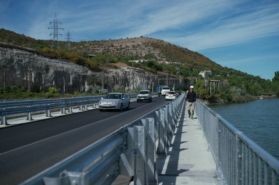 Продолжаем капремонт моста через реку Черную, работы идут по нацпроекту «Инфраструктура для жизни». Специалисты восстановили выравнивающий слой и выполнили гидроизоляцию мостового полотна, переустроили на проезжей части систему водоотведения. На всем протяжении моста уложили асфальтобетонное покрытие и установили барьерные ограждения. Сняли реверсивное движение. Сейчас работы продолжаются. Мы рассчитываем, что после ремонта прослужит очень долго, но с учётом перспективного развития Инкермана нам предстоит развивать этот транспортный узел. Например, сегодня преображается Инкерманский завод марочных вин, здесь будет крупный туристический центр, и понятно, что дорожную инфраструктуру нужно будет перекраивать — иначе здесь будут постоянные пробки. Сегодня обсудили, что нужно запроектировать вторую очередь моста с переходом над железной дорогой.