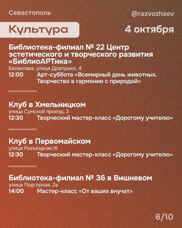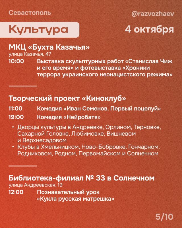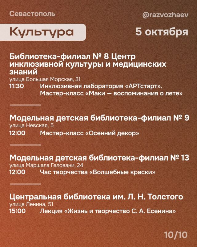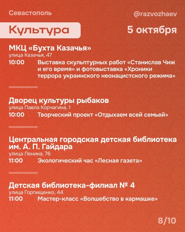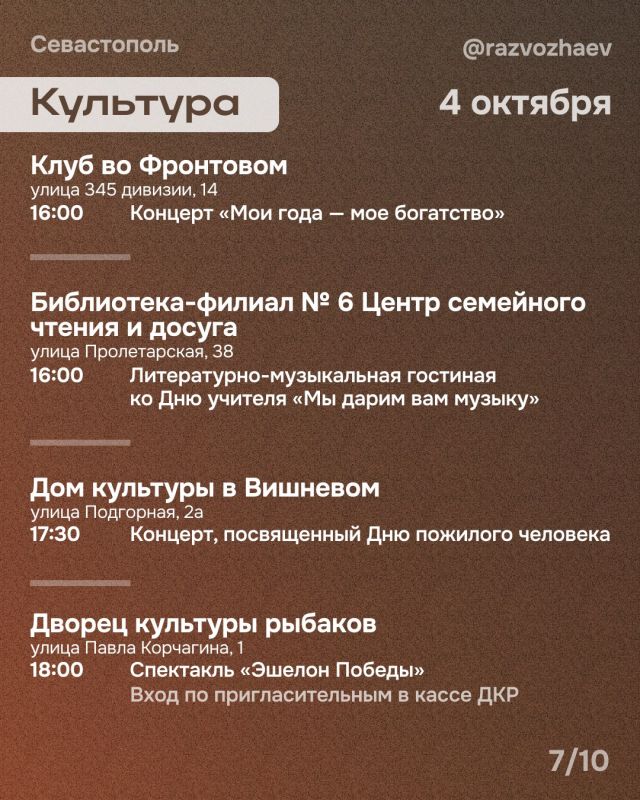 Впереди выходные, и уже традиционно севастопольские учреждения приготовили множество бесплатных мероприятий.
