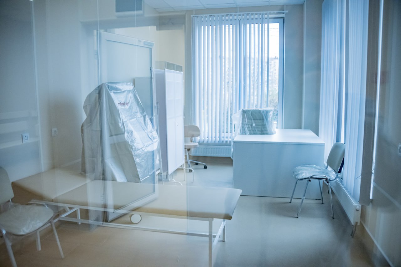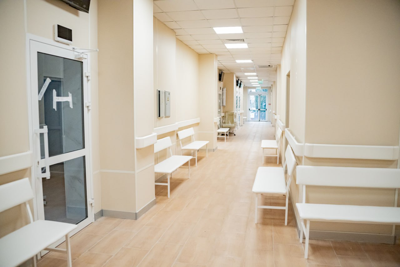 здесь 128 оборудованных кабинетов: для врачей, диагностических зон и персонала.
