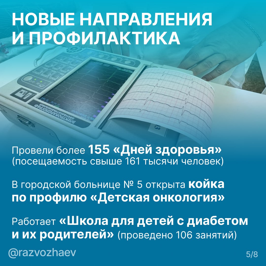 Продолжаем развивать специализированную помощь. В городской больнице №5 начали оказывать стационарную медпомощь детям с онкологическими заболеваниями. Здесь же работает школа для детей с сахарным диабетом, где провели уже 106 занятий.