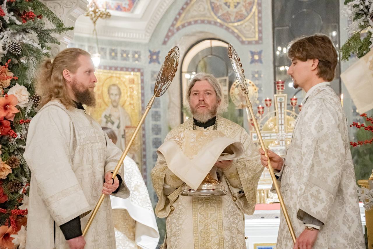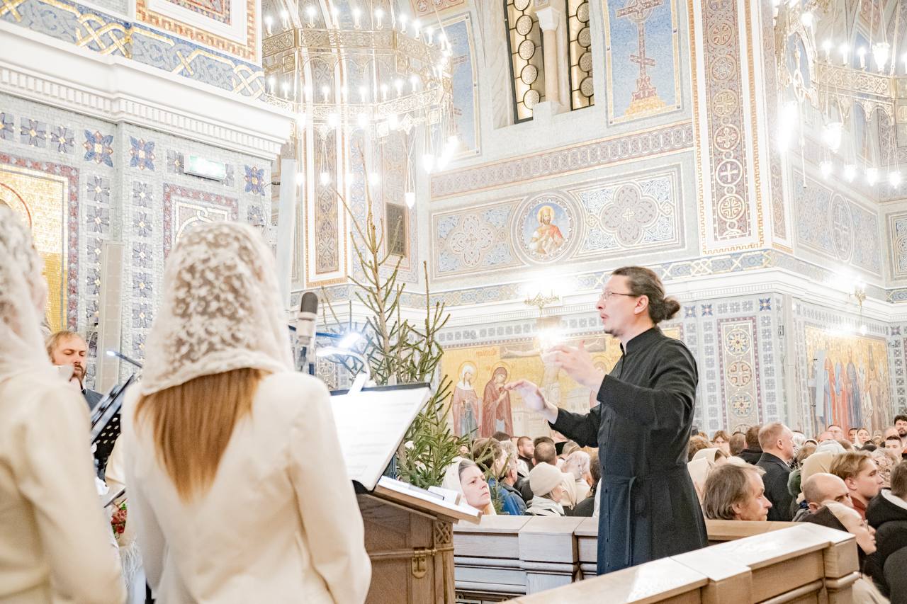 Празднование Рождества продолжилось сегодня. В 10:00 началась поздняя Божественная литургия в верхнем храме Свято-Владимирского собора. А с 12:00 до 13:00 гостей ждет рождественский концерт.