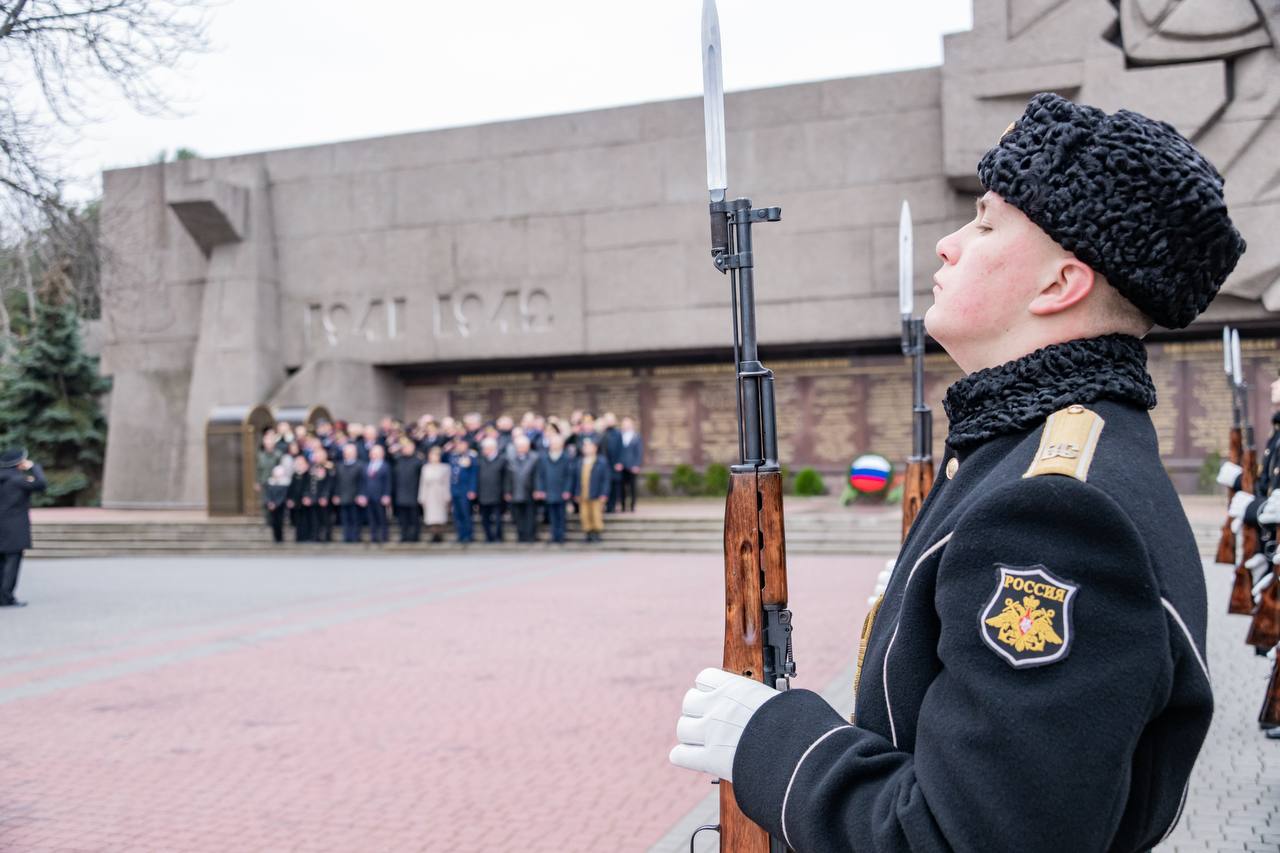 Вместе с командующим Черноморского флота Сергеем Михайловичем Пинчуком, представителями силовых и федеральных ведомств, Черноморского флота, общественниками, депутатами Законодательного Собрания, участниками программы «Севастополь — город героев» возложили цветы к мемориалу героической обороны Севастополя 1941-1942 гг.