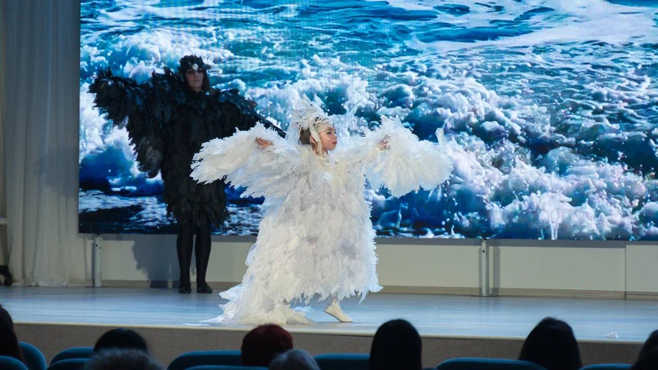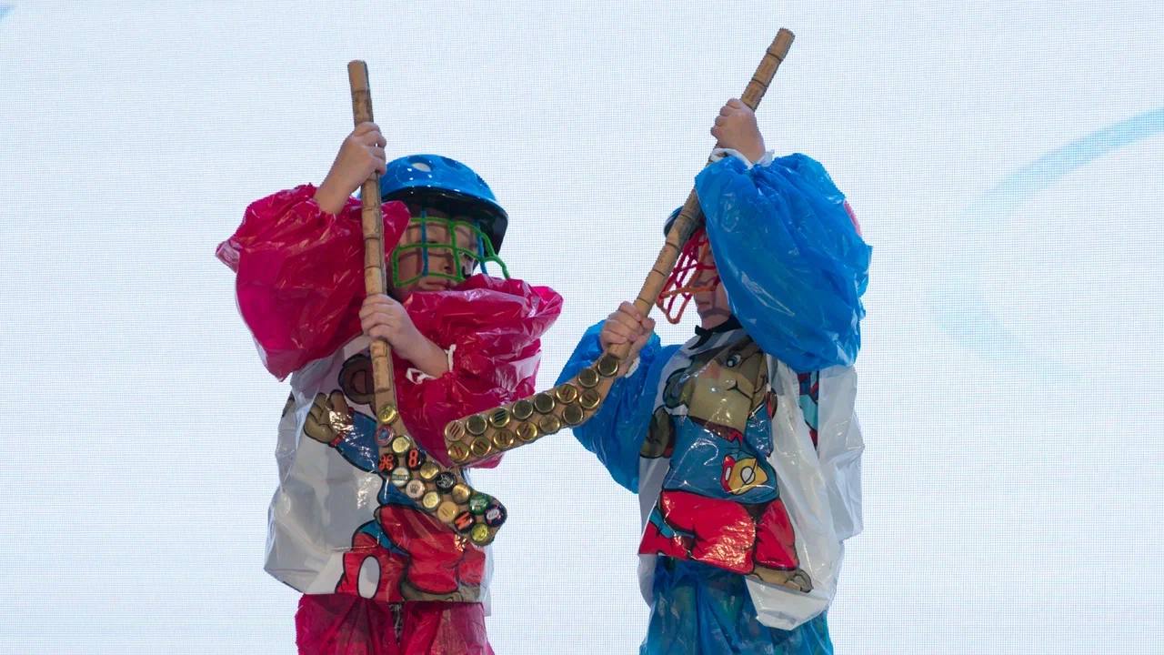 Удивительно, как из пластиковых бутылок, картона, фольги, лоскутков ткани и даже обычных шторок для душа можно создать настоящие шедевры. На сцене школы «ЭКОТЕХ+» появились сказочные герои, обитатели морских глубин, персонажи любимых мультфильмов. Семьи не просто демонстрировали наряды, а разыгрывали целые сценки с танцами и представлениями. Конечно, были и выступления, посвященные Году единства народов России, — очень красивые, трогательные и символичные.