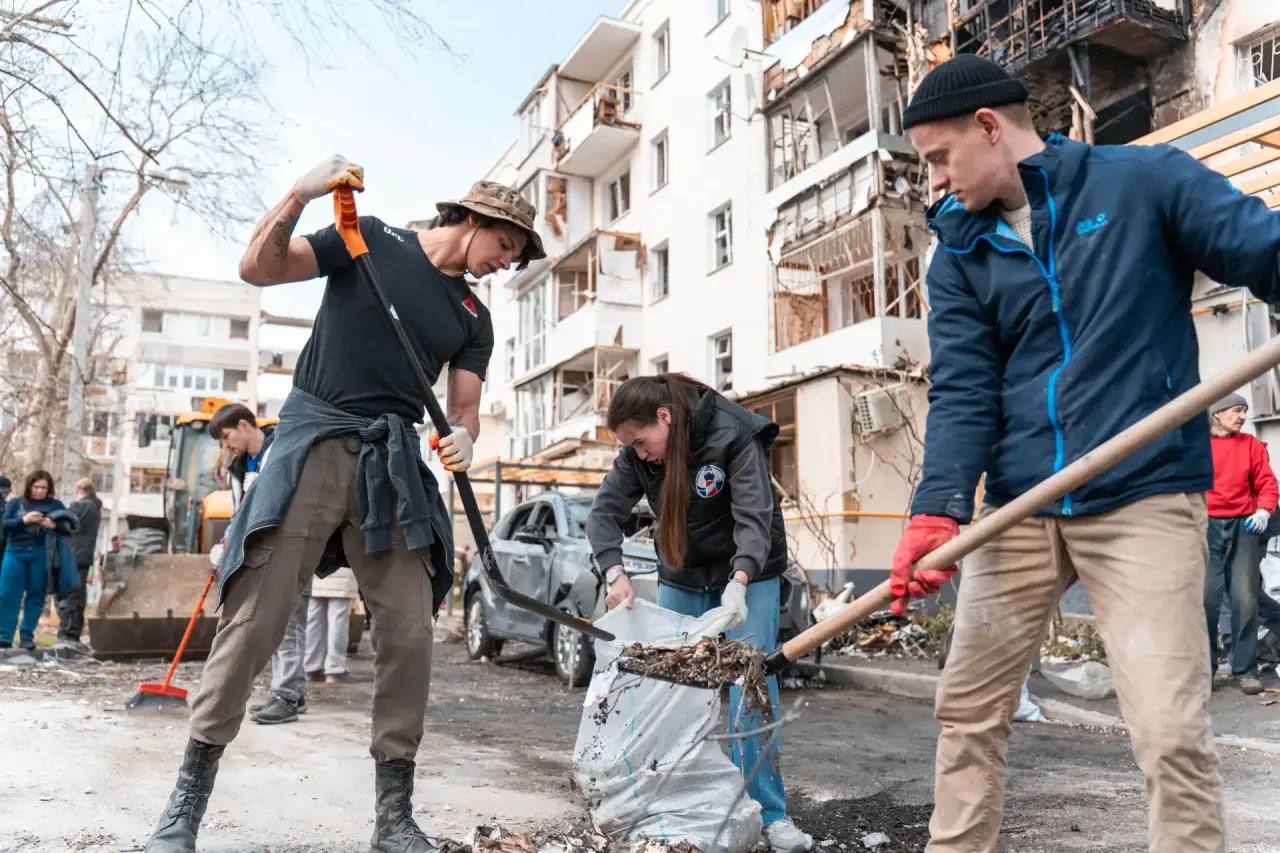 Наши волонтеры помогают убирать последствия взрыва в домах на улице Павла Корчагина