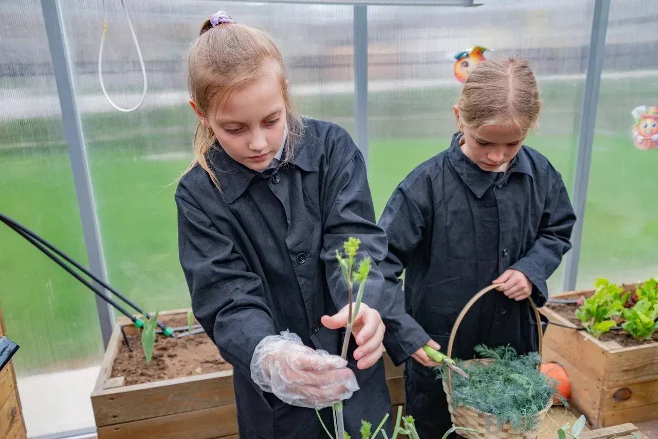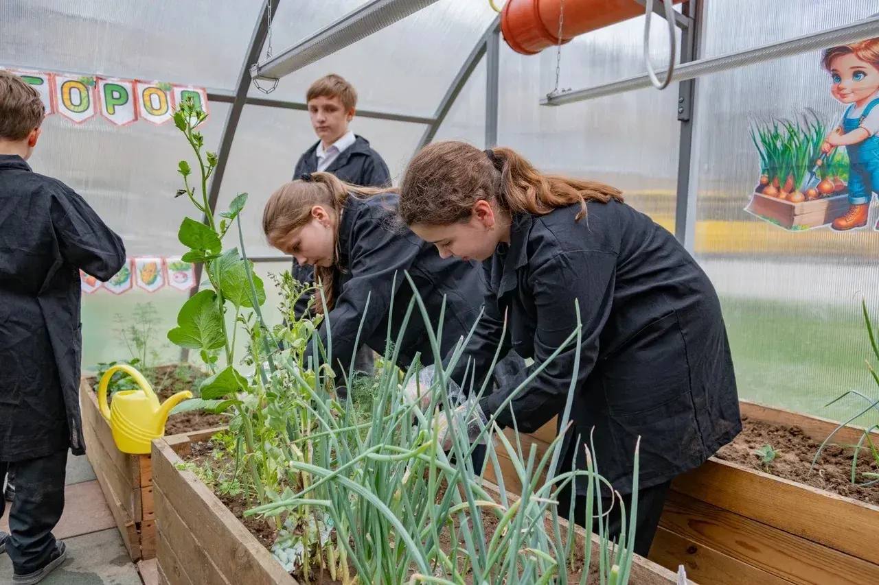 Сейчас ученики 7–11 классов под руководством учителей высаживают рассаду овощей и зелени в уникальной теплице-биовегетарии. Это не просто теплица: она сама себя и греет, и охлаждает, что позволяет практиковаться в течение всего года. Также на территории школы растёт учебный виноградник. За ним ухаживают семиклассники: проводят исследования, пишут научные работы.