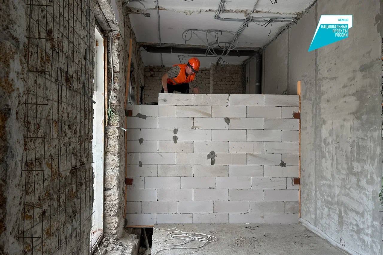 Сейчас готовность объекта составляет 30%. Специалисты приступили к прокладке инженерных сетей, устройству стяжек и отделочным работам. В садике смонтируют тёплые полы, а в каждой группе будет установлен кондиционер — это требование, которое я обязательно ставлю при проведении капитального ремонта.