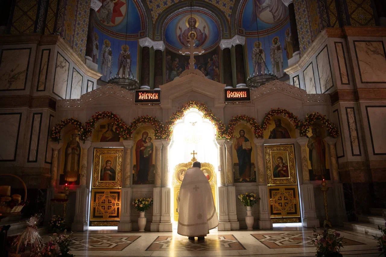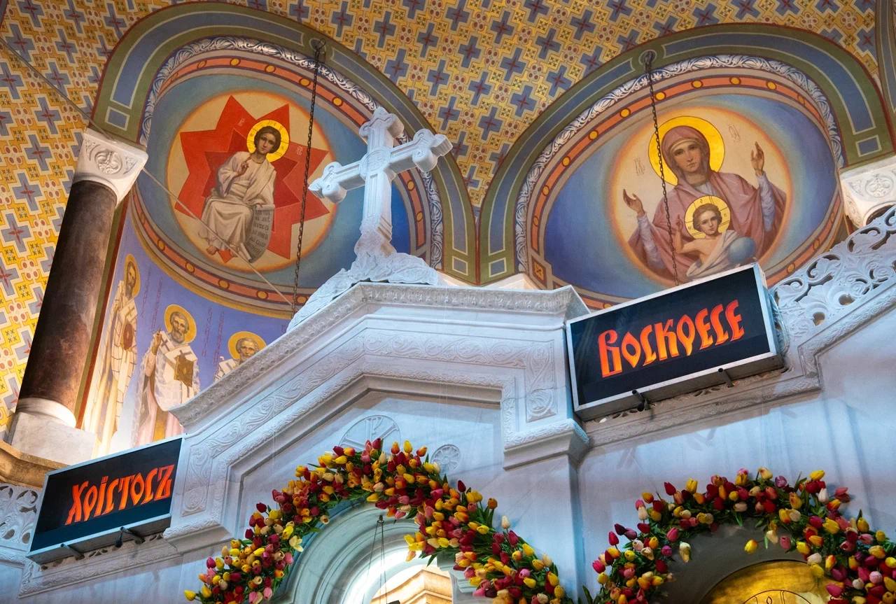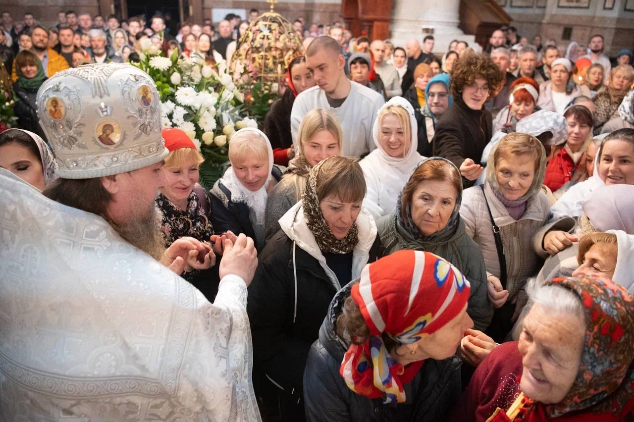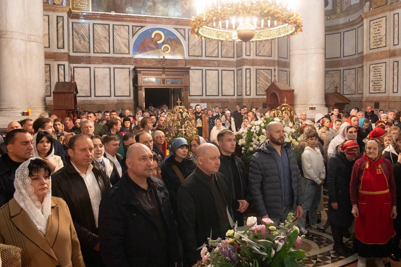 Под сводами собора царила особая атмосфера: люди пришли с родными и близкими, звенели колокола, звучали торжественные песнопения и радостные возгласы «Христос Воскресе! Воистину Воскресе!»