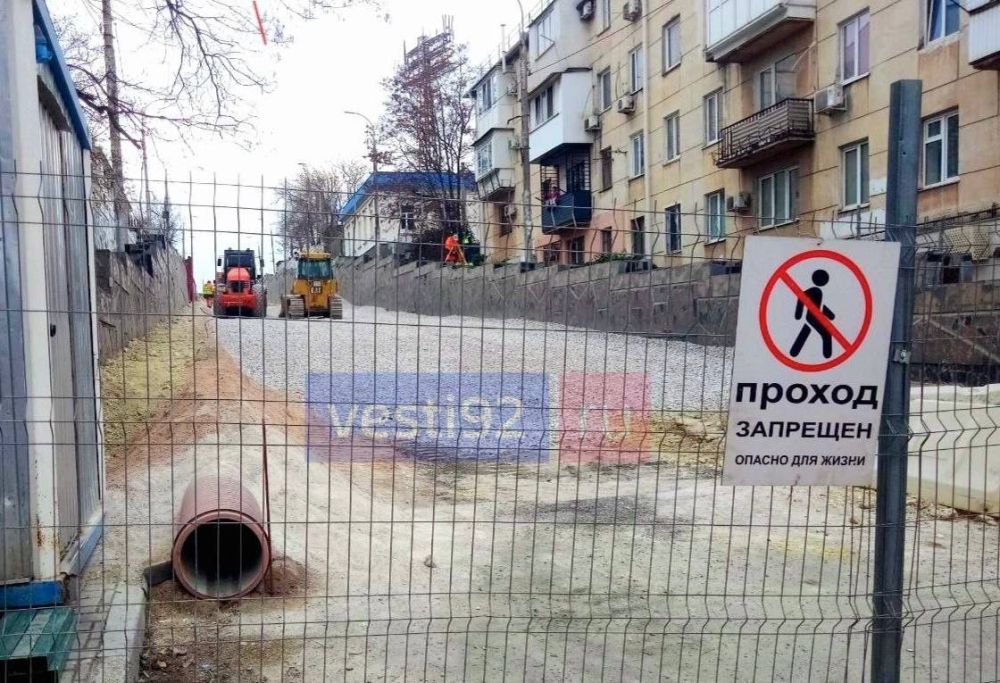 На улице Адмирала Октябрьского в Севастополе продолжается ремонт подпорных стен
