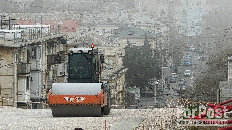 На улице Адмирала Октябрьского заканчивают засыпать щебнем участок между двумя аварийными подпорными стенами.