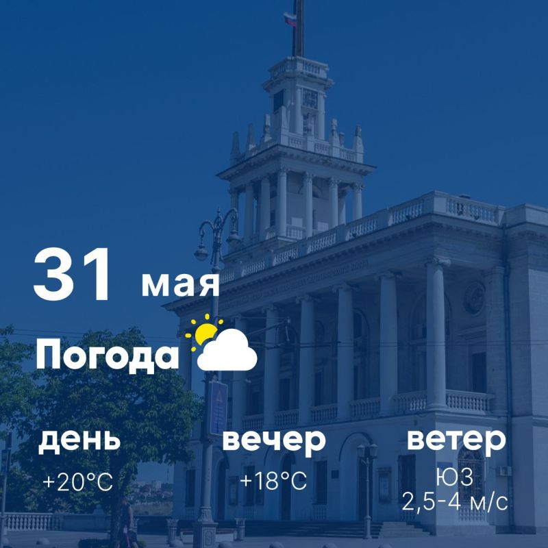 Доброе утро, севастопольцы! Сегодня, 31 мая, в городе переменная облачность. До долгожданного лета остался один день, всем хорошего настроения!