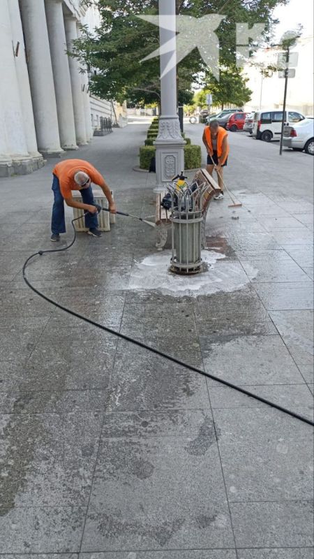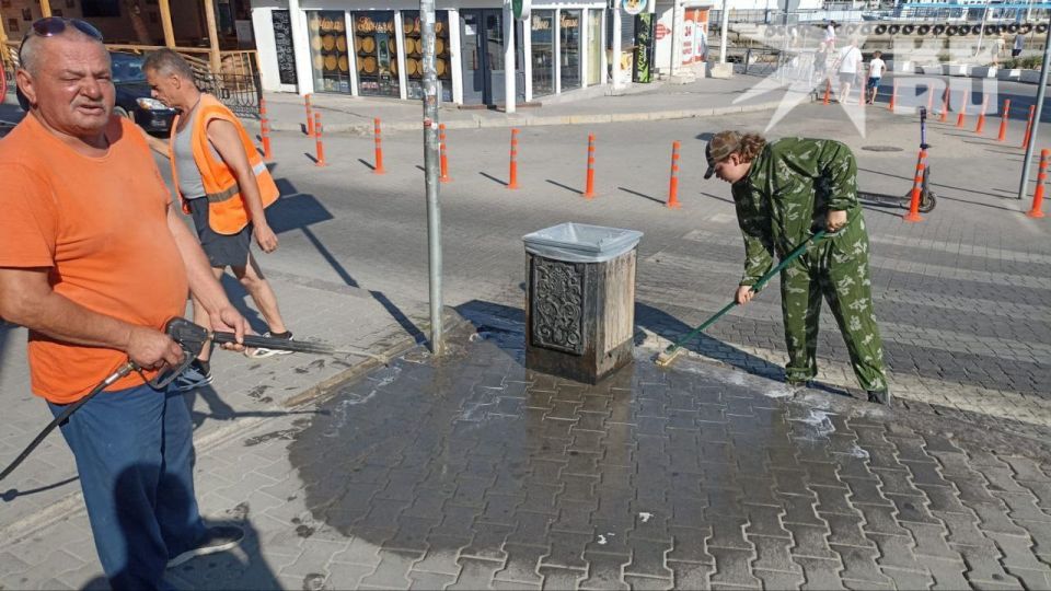 В разгар севастопольской жары городские улицы и лавочки тоже принимают «освежающие ванны»
