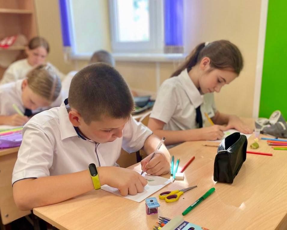 Пятиклассники вместе с советником директора по воспитанию, Алиной Гончаренко, присоединились к всероссийской акции «Позывной».