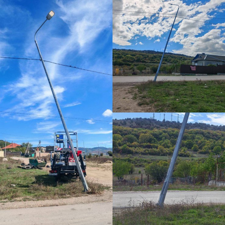 Внимание! Повреждена опора наружного освещения в с. Широкое (возле Церкви, поворот на с. Озерное)