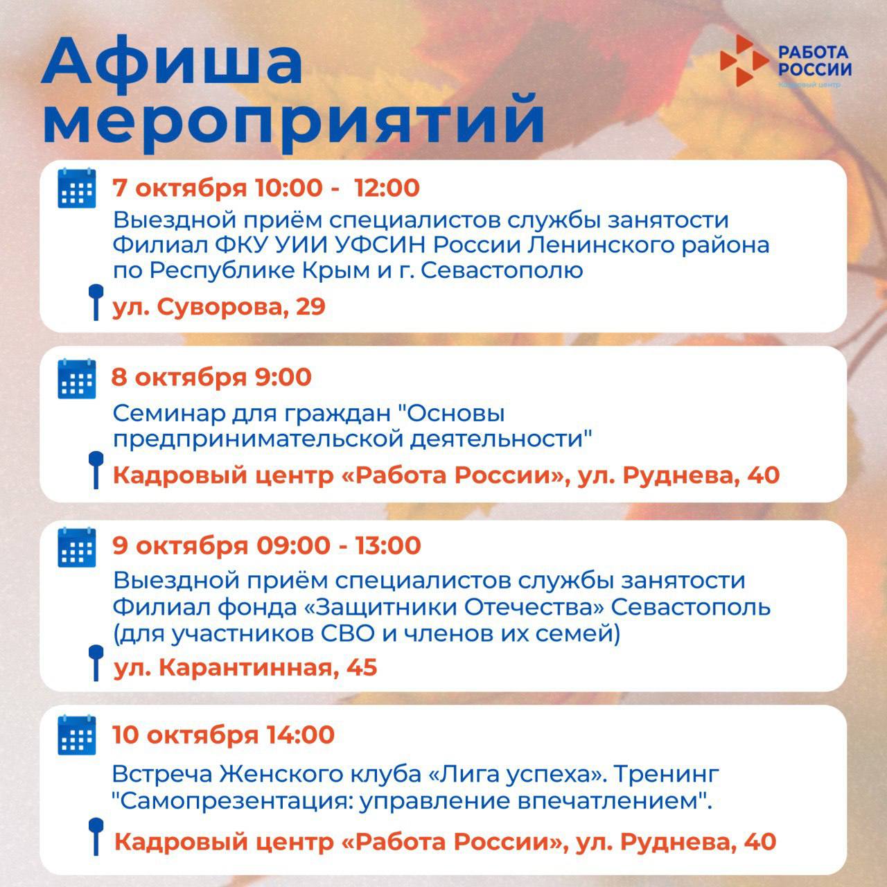Кадровый центр «Работа России» приглашает севастопольцев на бесплатные мероприятия