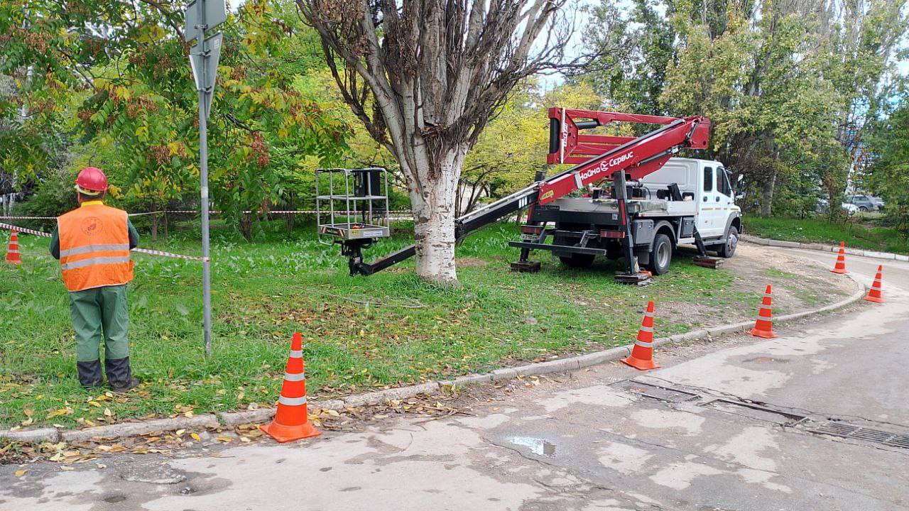 Ежедневно специалисты «Парков и скверов» проводят мониторинг состояния зелёных насаждений. Контролируют состояние на общественных территориях, находящихся на балансе учреждения. Где требуется, обрезают ветки и сносят сухие деревья. Работы плановые.