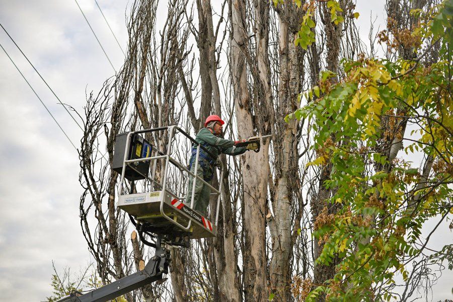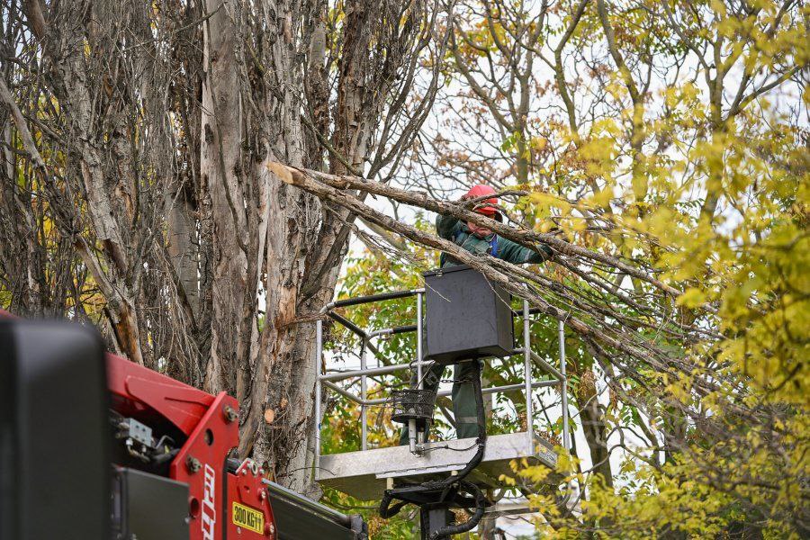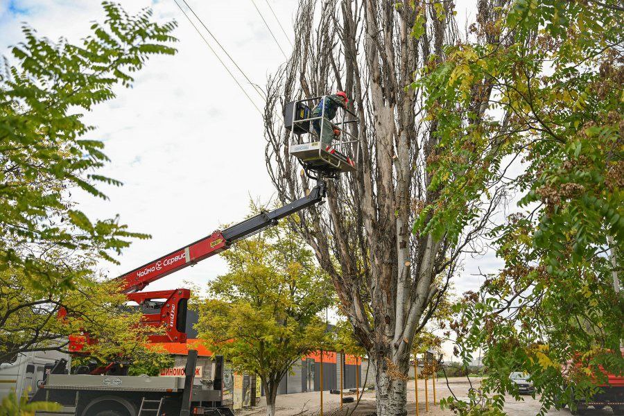 Работники «Парков и скверов» ежедневно проводят мониторинг растений, находящихся на балансе у учреждений, где необходимо, сносят сухие деревья и обрезают засохшие ветки. С приближением сезонных ветров работы усилили.