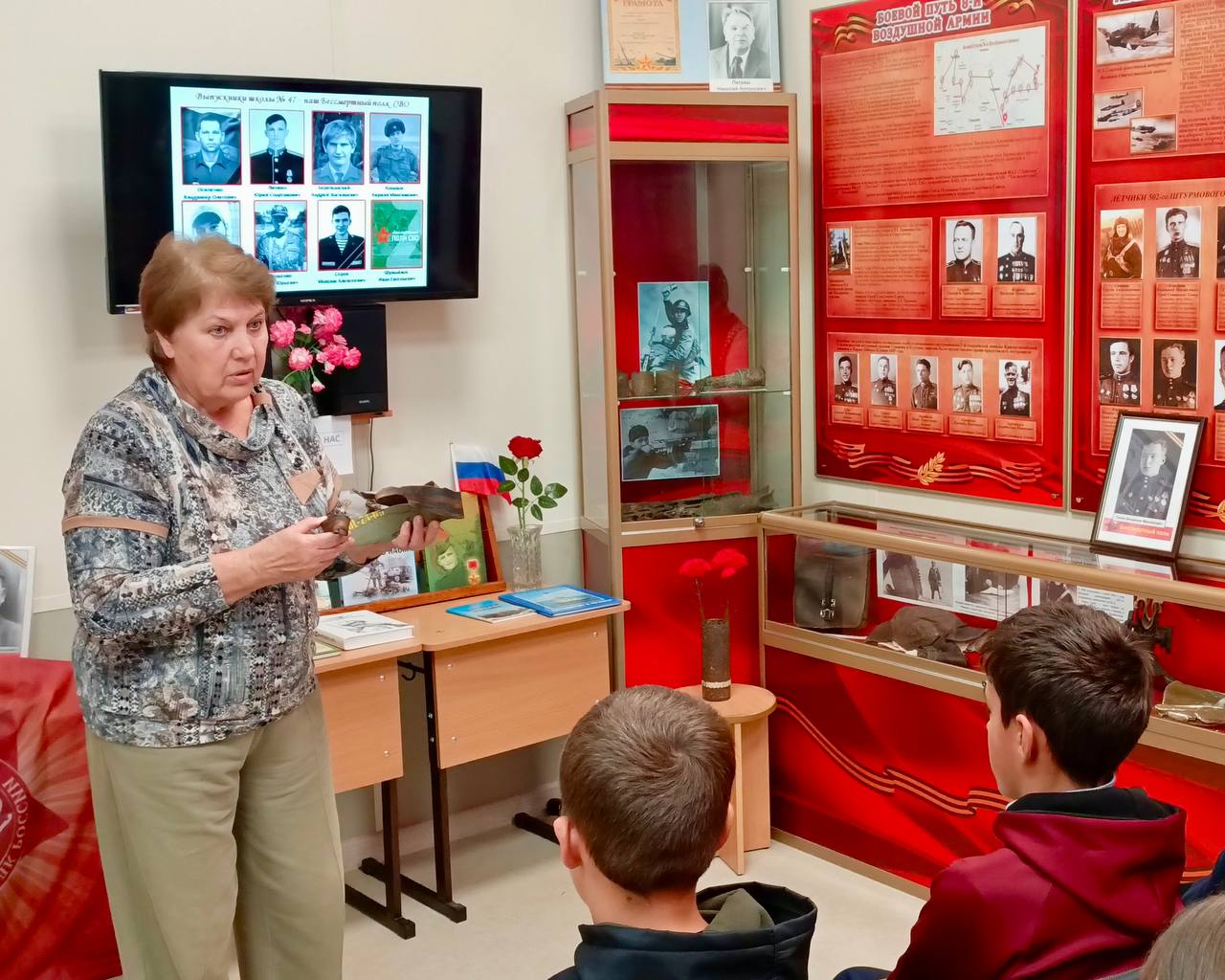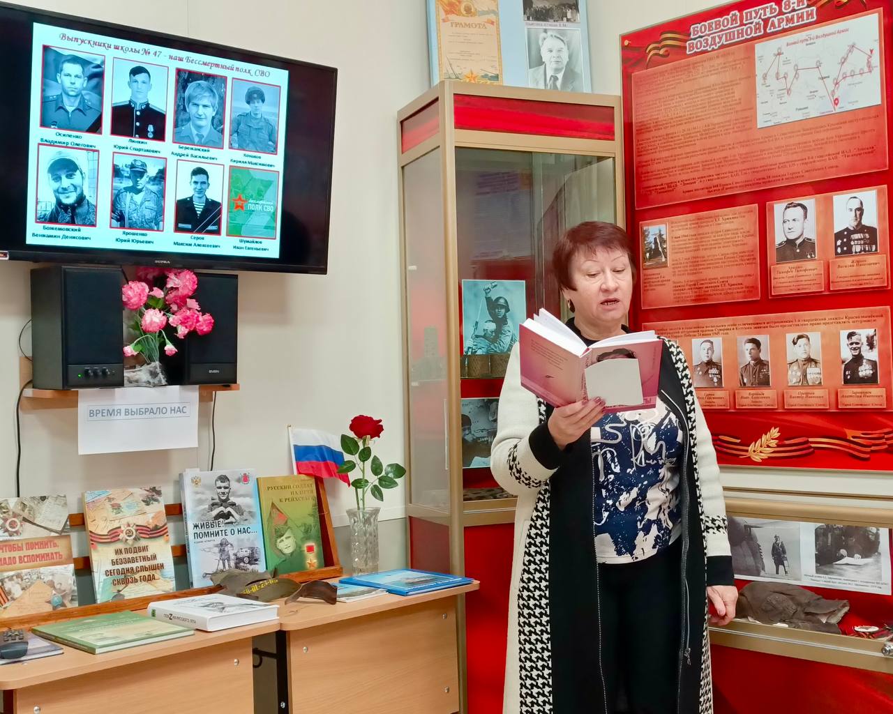 В рамках Международного месячника школьных библиотек в музее школы №47 прошло патриотическое мероприятие «Время выбрало нас». Его организовали руководитель музея Светлана Попоудина, педагог-библиотекарь Валентина Ванькович и Навигатор Детства Анастасия Сухарева.