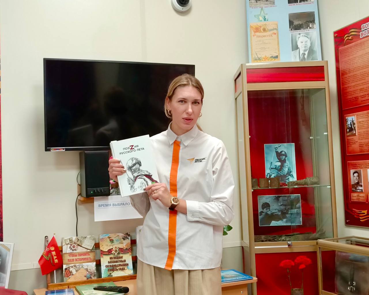 Библиотекарь познакомила школьников со сборником стихов Г. Боженко «Не могу молчать!», а советник — с книгой «ПоэZия нашего времени». Ребята читали стихи о Героях и современных событиях, обсуждали прочитанное.