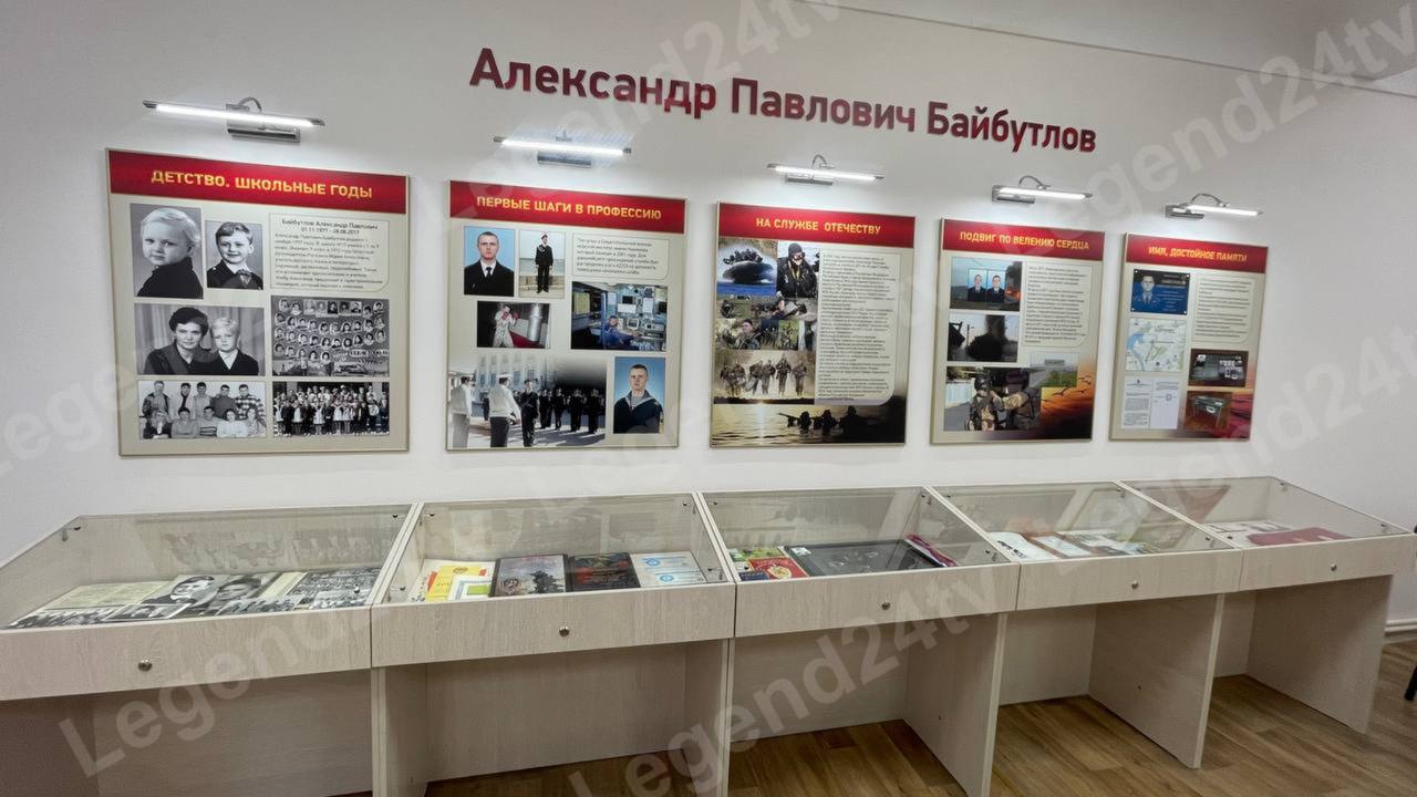 Наибольшая часть экспозиции посвящена сотруднику ФСБ, героически погибшему при исполнении воинского долга в Республике Дагестан, Александру Байбутлову. Его имя носит образовательное учреждение.