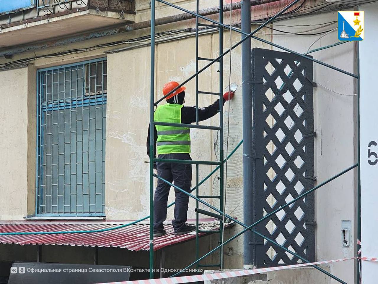 Сейчас расчищают поверхности, делают антисептическую обработку, ремонтируют межпанельные швы и монтируют армирующую сетку.